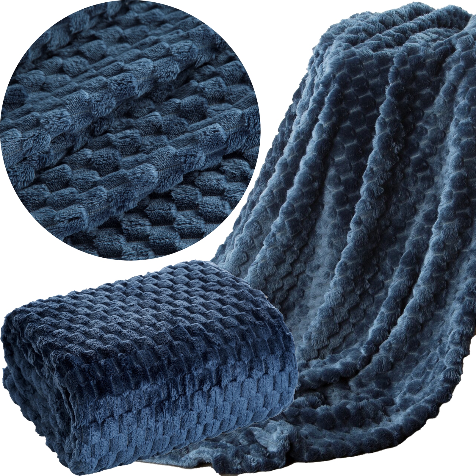 Koc narzuta mięciutki gruby 150 cm x 200 cm niebieski