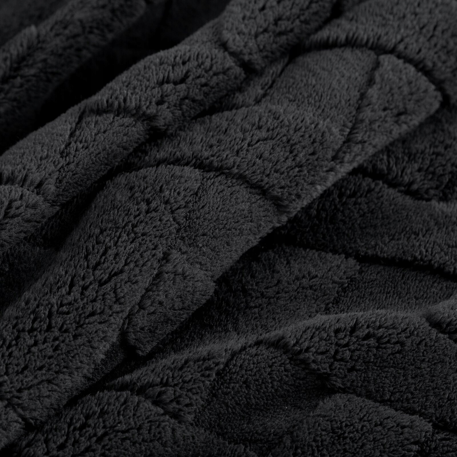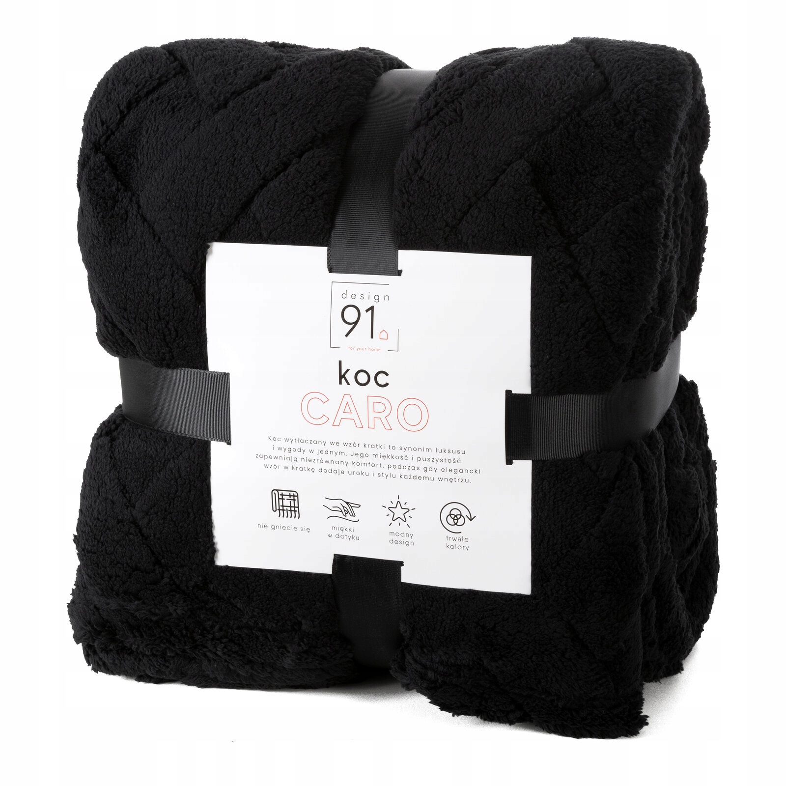 Koc narzuta 70×160 Caro czarny gruby mięciutki puszysty