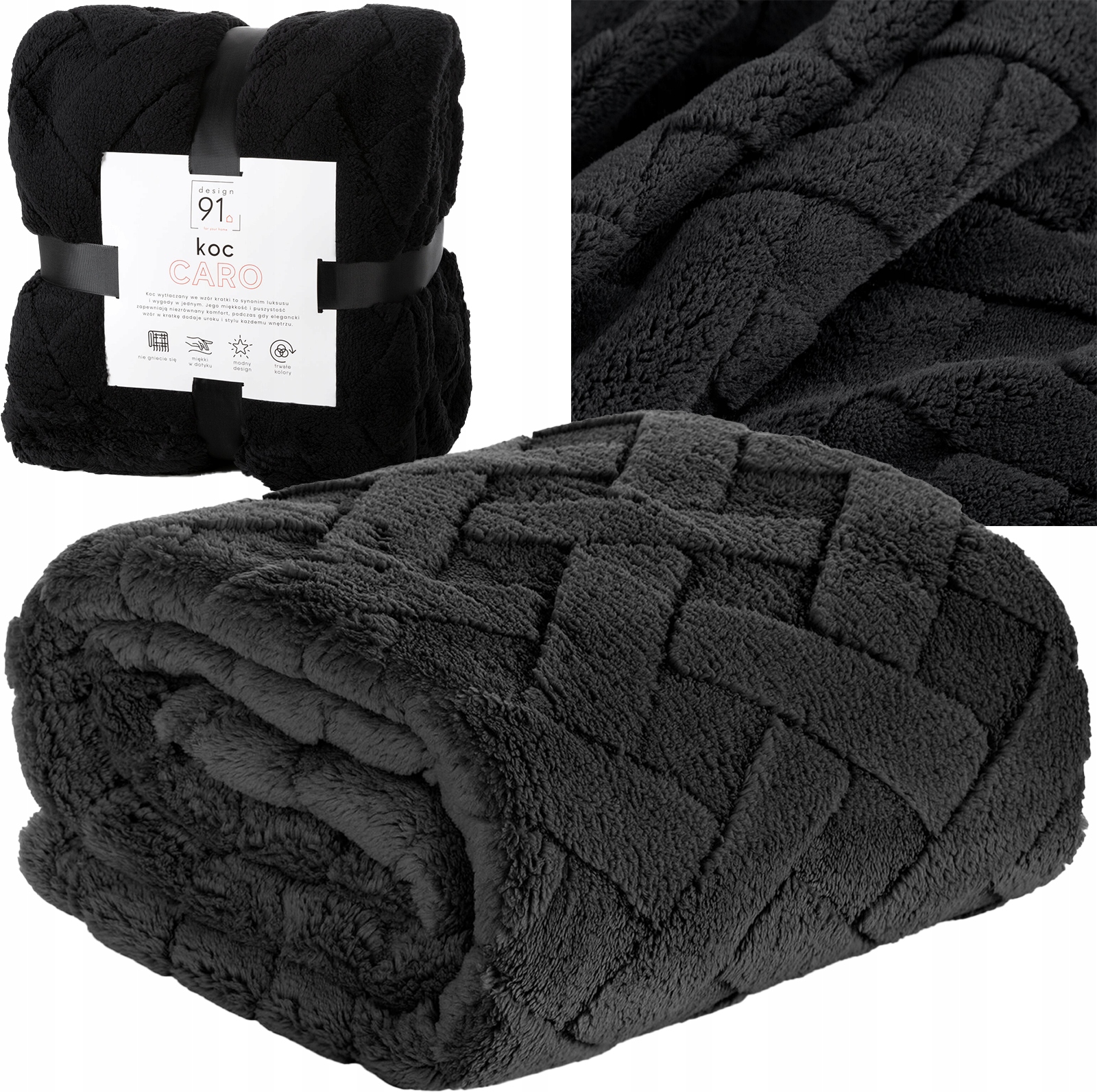 Koc narzuta 70×160 Caro czarny gruby mięciutki puszysty