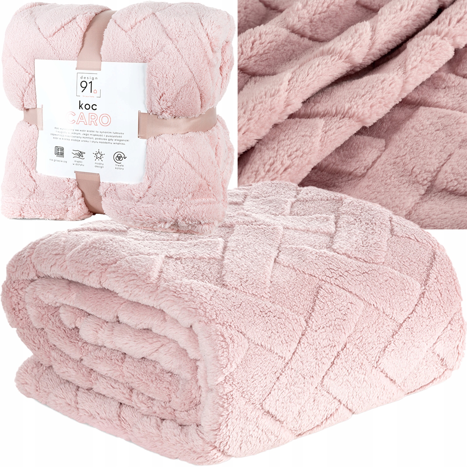 Koc narzuta Caro 70×160, to produkt łączący w sobie funkcje praktyczne i dekoracyjne. Jest wyjątkowo delikatny, niezwykle miękki i miły w dotyku. Puszysta i cieplutka mikrofibra doskonale Cię otuli zapewniając komfort termiczny. Jednobarwna, puszysta faktura ozdobiona jest minimalistycznym tłoczeniem w formie jodełki. Grubość koca i rozmiar pozwalają na użycie go również jako narzuty na fotel. Doskonale się pierze nie zmieniając przy tym koloru ani zatracając fasonu, nie gniecie się, nie wymaga prasowania.