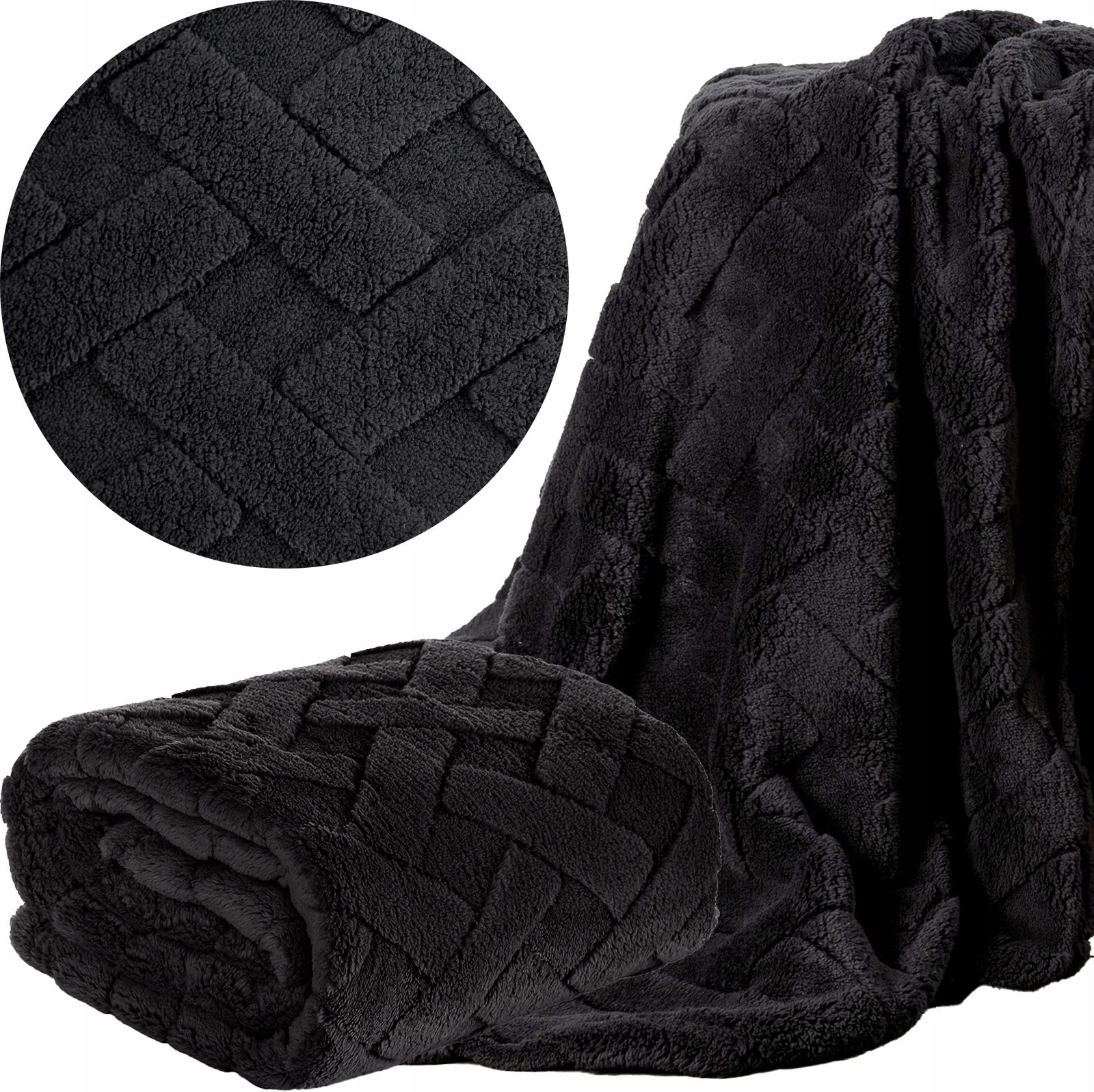 Koc narzuta 70×160 czarny gruby mięciutki puszysty