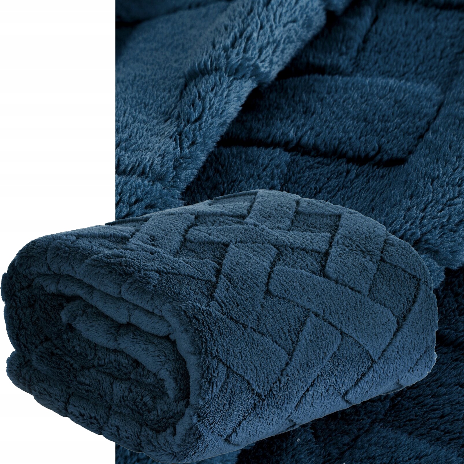 Koc narzuta 70×160 granatowy gruby mięciutki puszysty