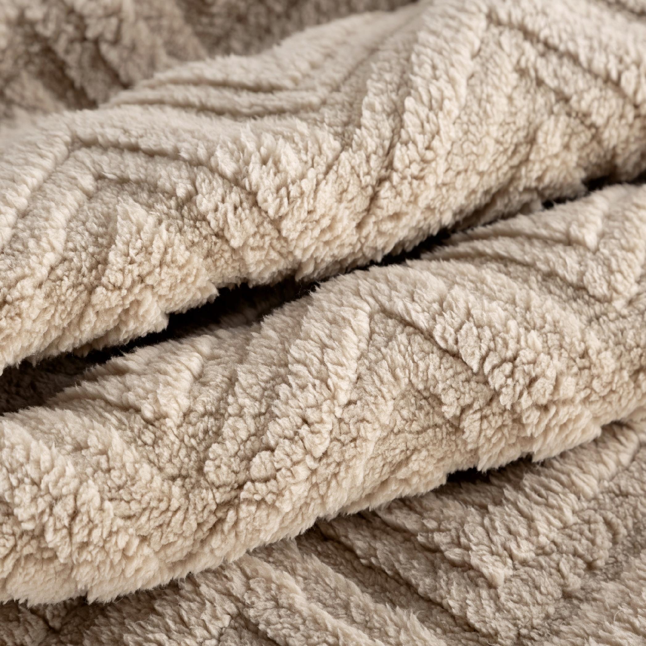 Gruby, wytłaczany koc ze wzorem w jodełkę, który doda wnętrzu eleganckiego i nowoczesnego wyglądu.