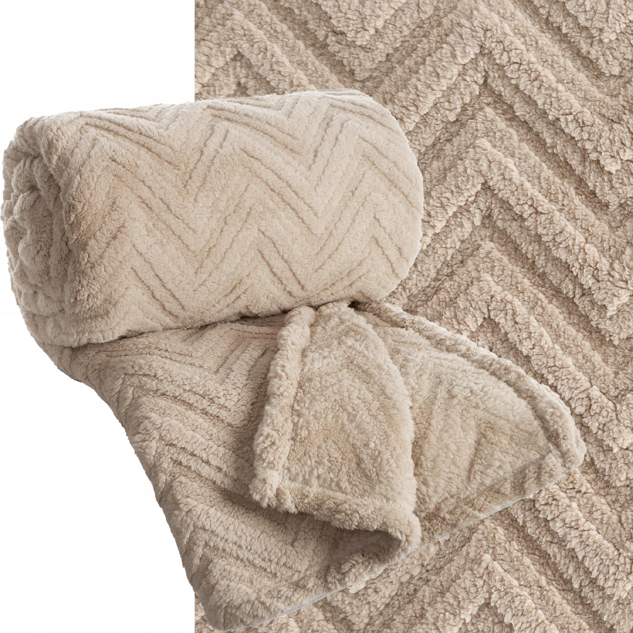 Koc narzuta 70×160 gruby mięciutki puszysty jodełka ciemny beżowy