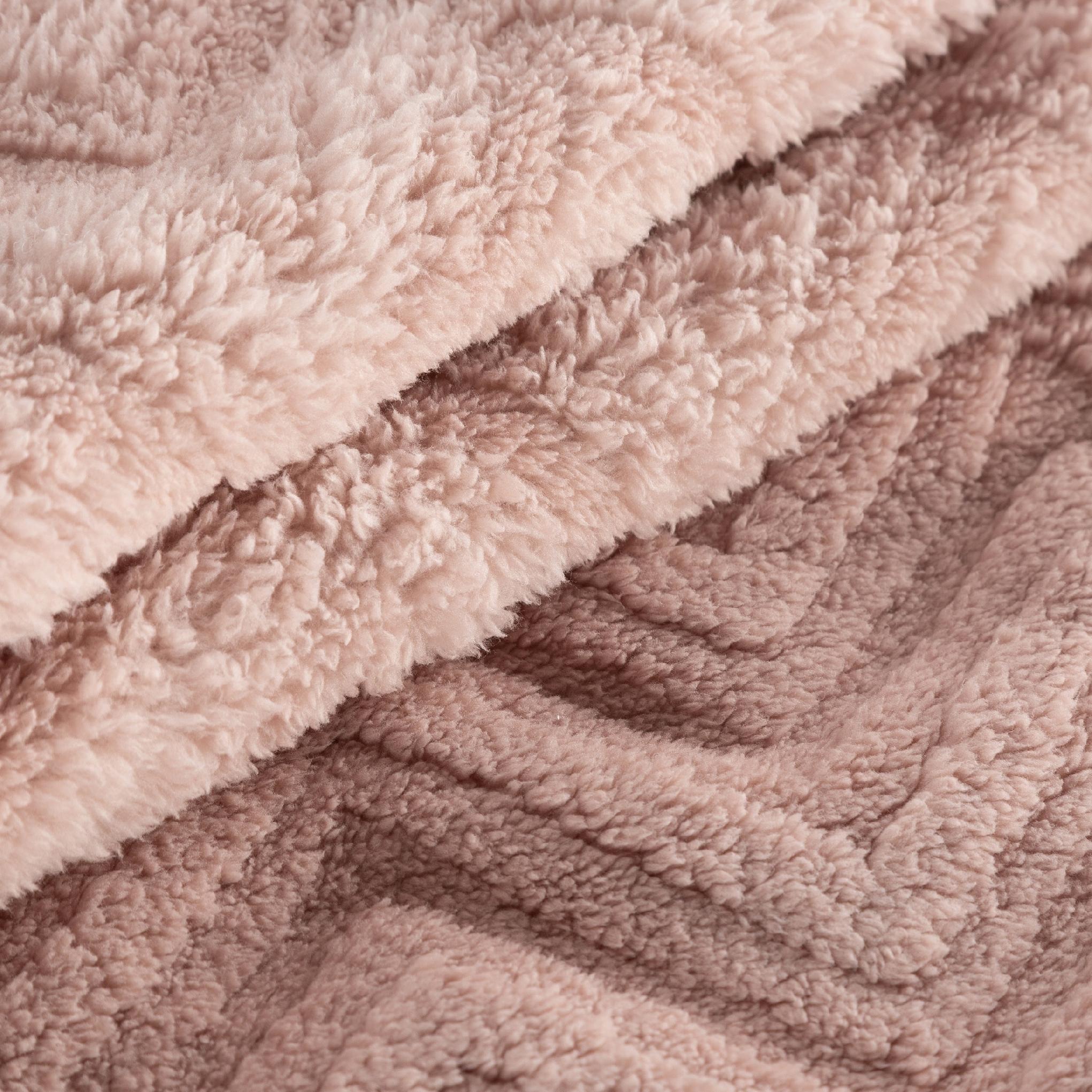 Koc narzuta 70×160 gruby mięciutki puszysty jodełka jasny puder