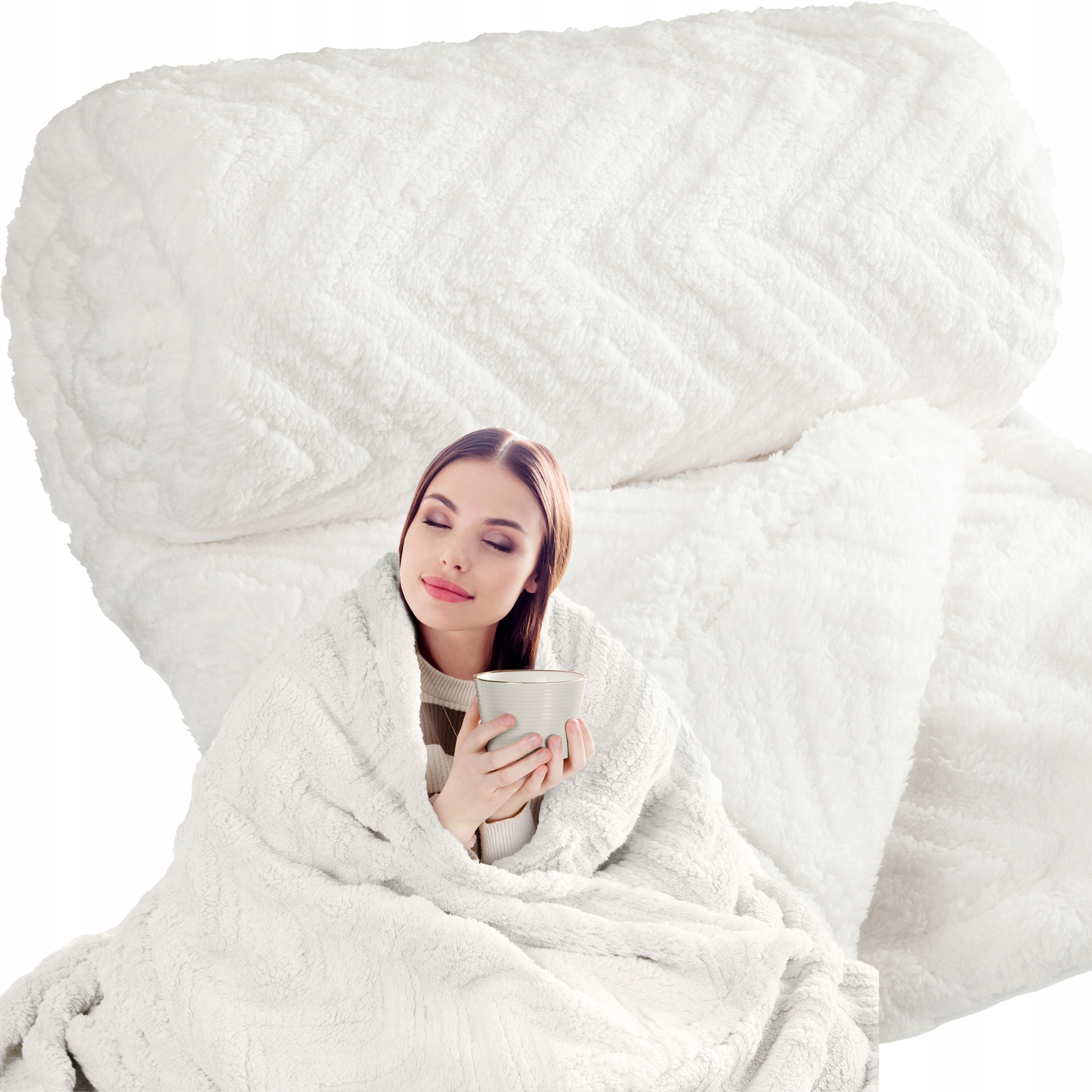 Koc narzuta 70×160 gruby mięciutki puszysty jodełka kremowy