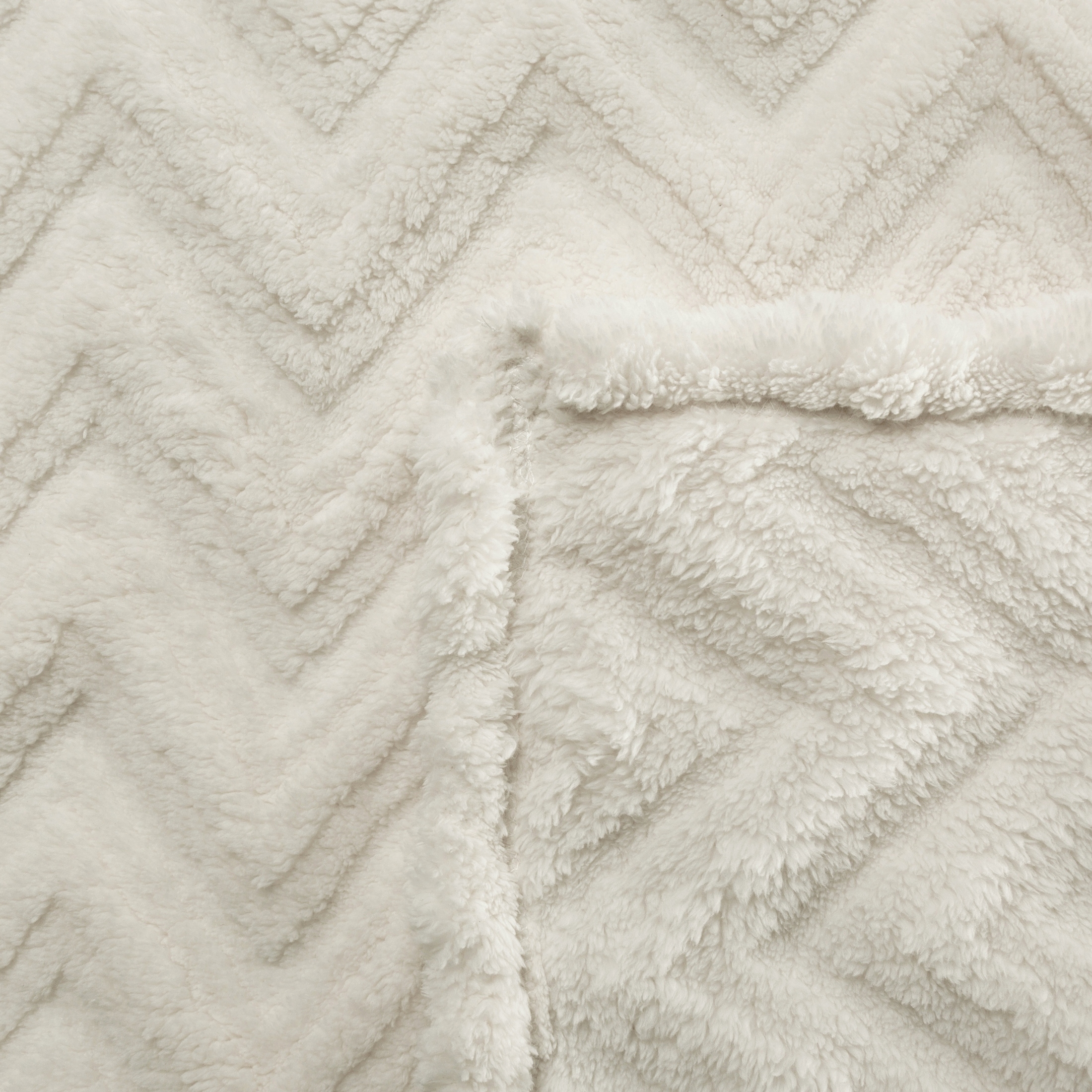 Gruby, wytłaczany koc ze wzorem w jodełkę, który doda wnętrzu eleganckiego i nowoczesnego wyglądu.