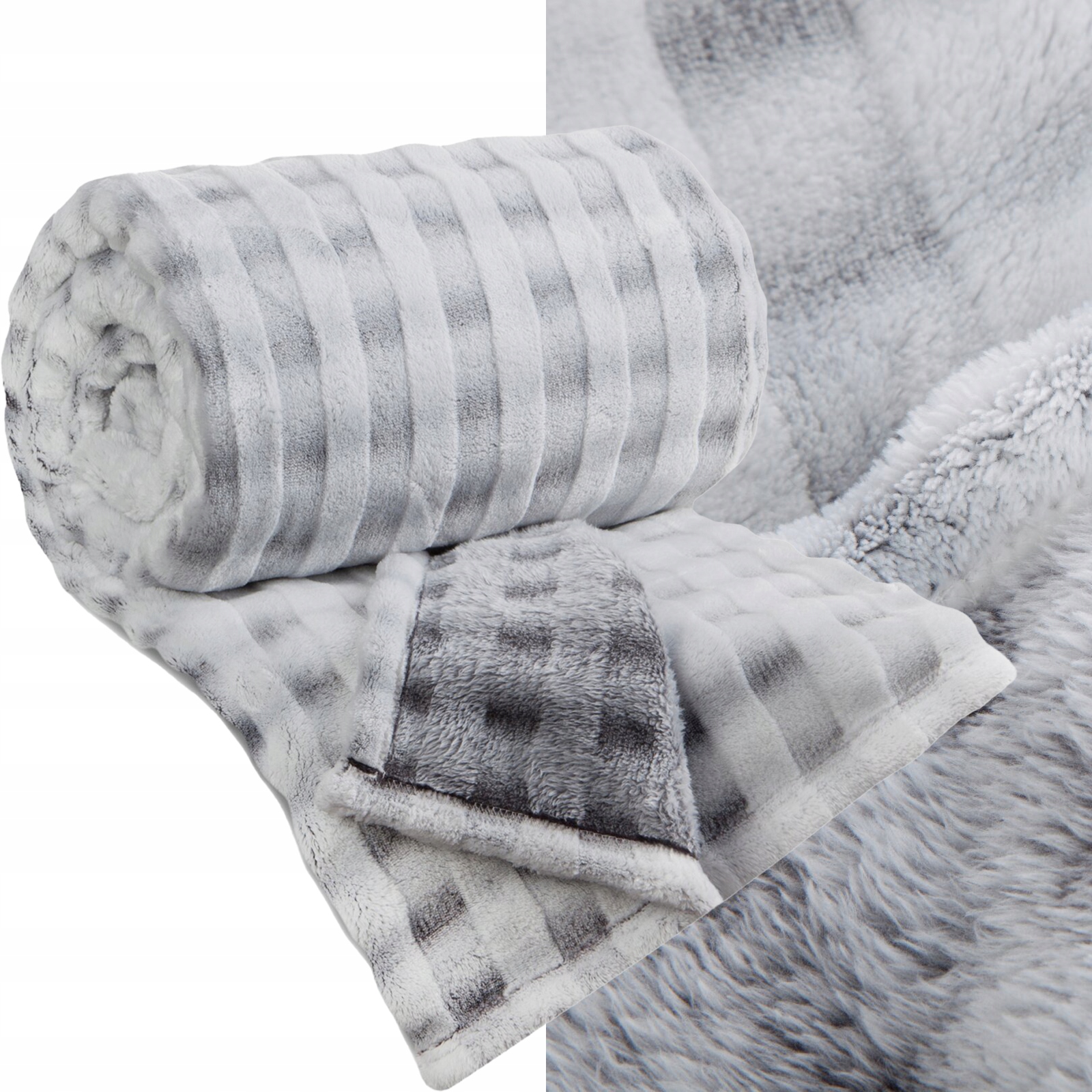 Koc narzuta 70×160 gruby mięciutki puszysty stalowy