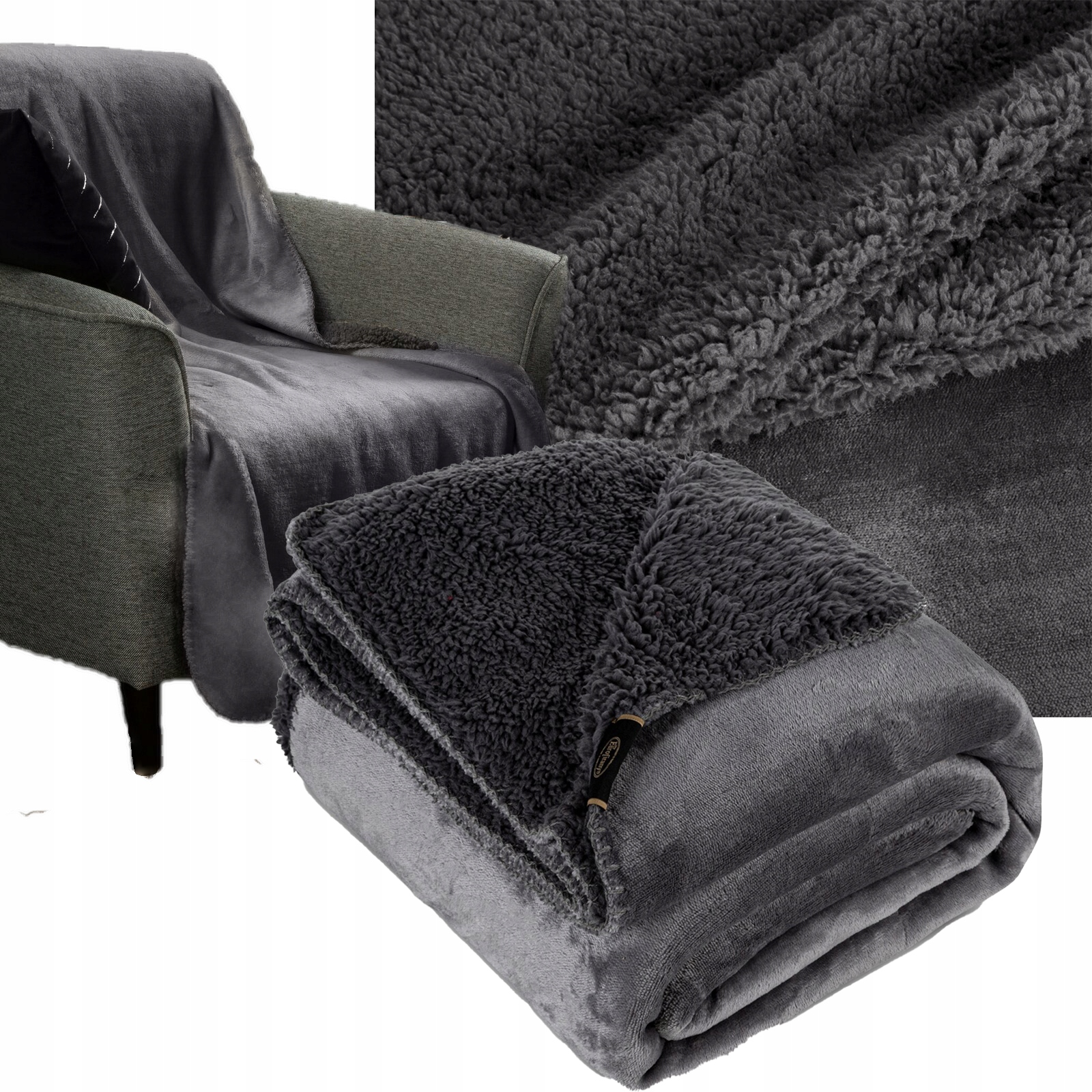 Koc narzuta dwustronny PREMIUM 70 x 160 cm stalowy