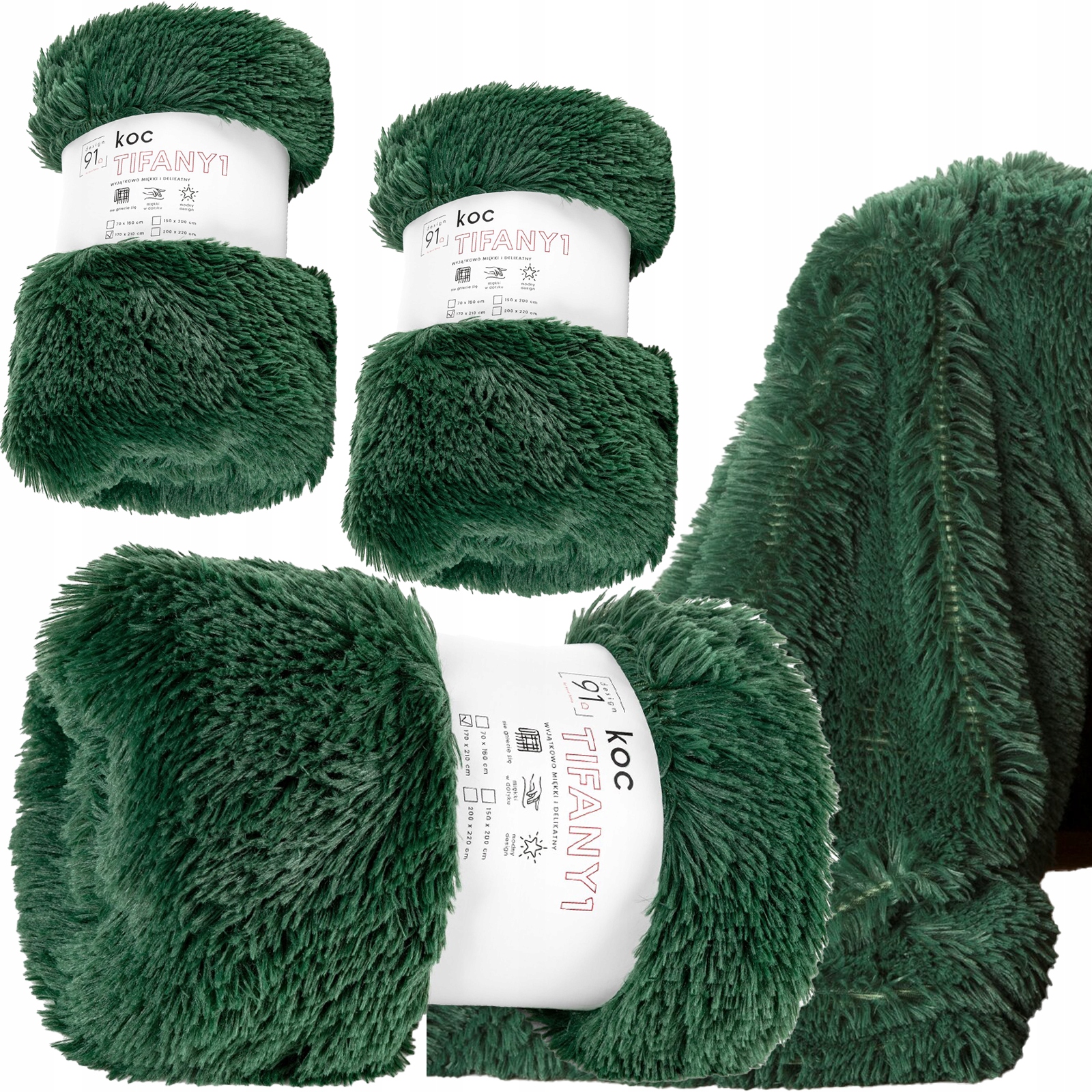 Ciemnozielony, miękki i przyjemny w dotyku koc o strukturze futra, rozmiar 170 cm x 210 cm + 2 x 70×160