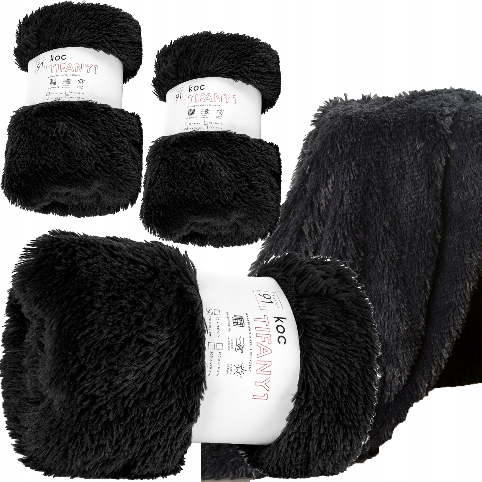 Czarny, miękki i przyjemny w dotyku koc o strukturze futra, rozmiar 170 cm x 210 cm + 2 x 70×160