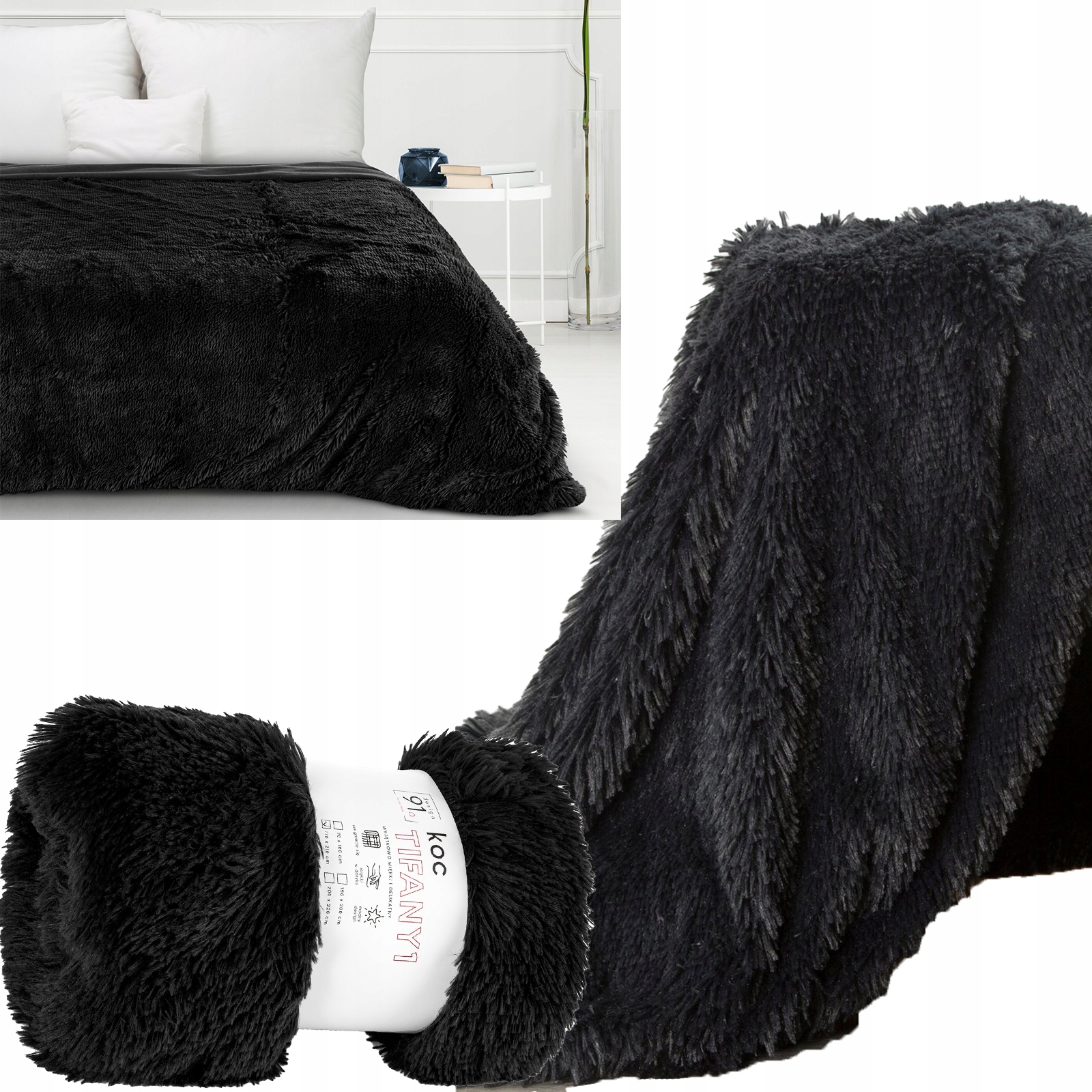Koc TIFANY futerkowy czarny 70×160 cm