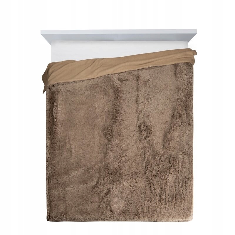 Koc włochacz futrzak pled narzuta na łóżko 170 cm x 210 ciemny beż