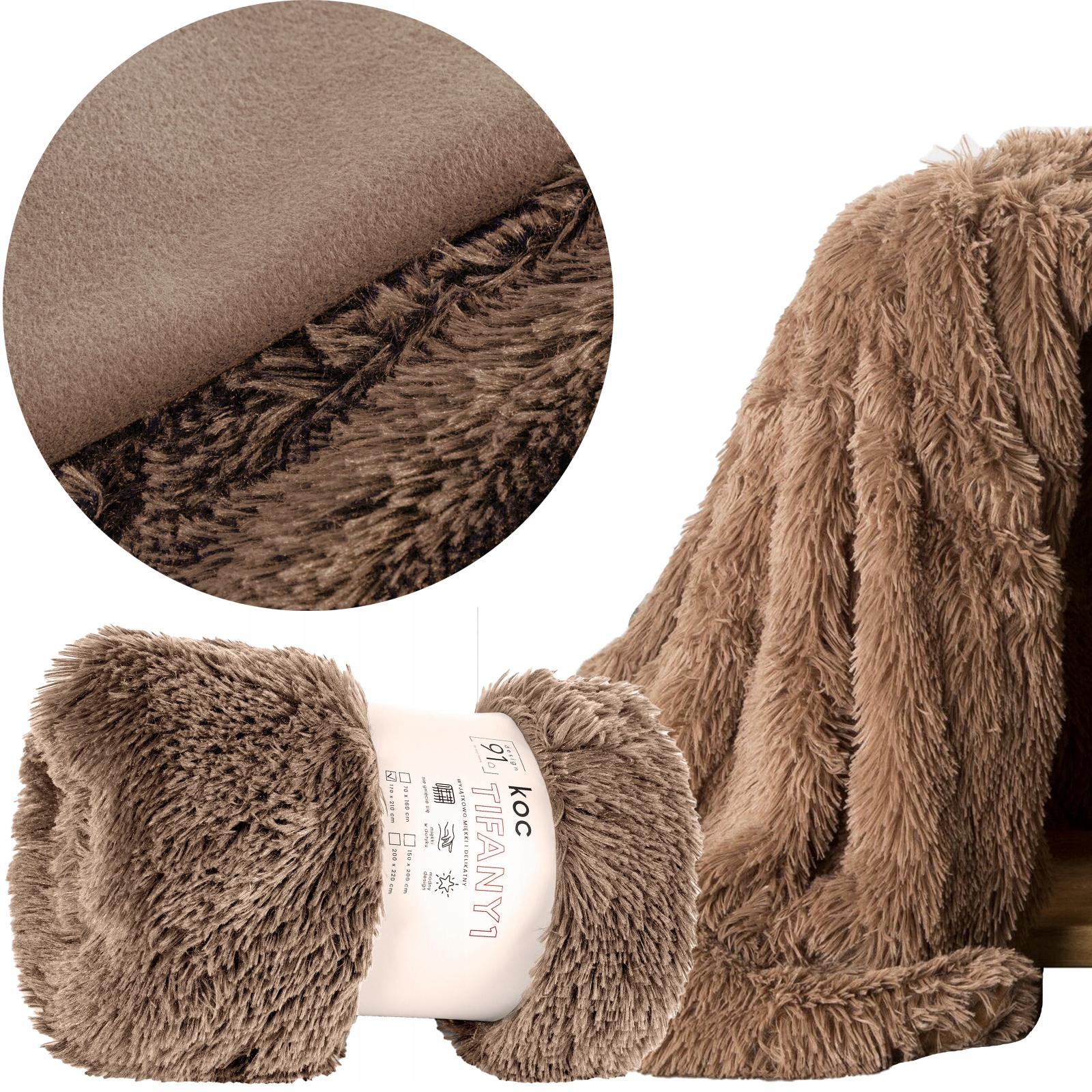 Ciemnobeżowy, miękki i przyjemny w dotyku koc o strukturze futra, rozmiar 170 cm x 210 cm