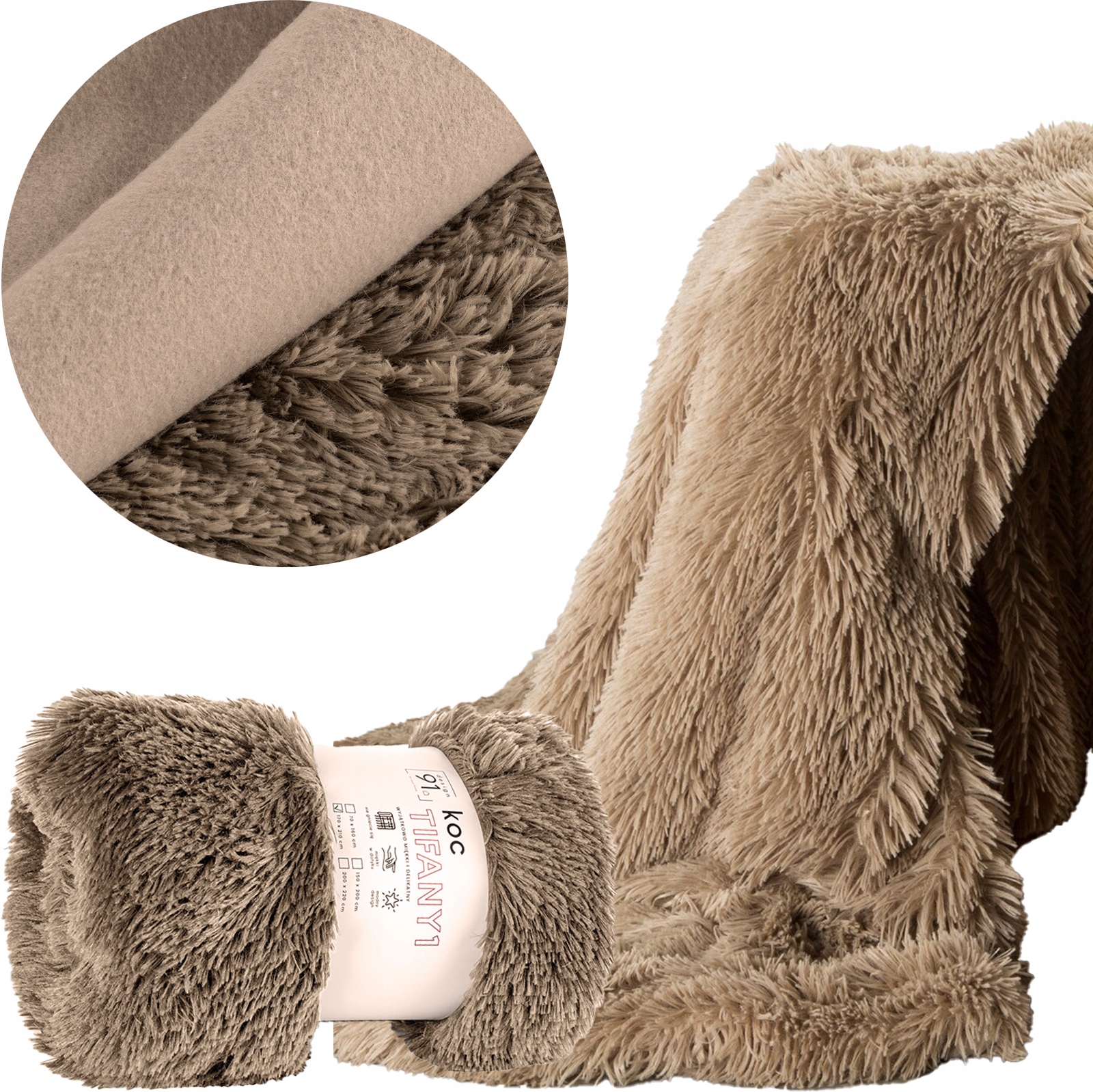 Koc TIFANY futerkowy beż 170×210 cm