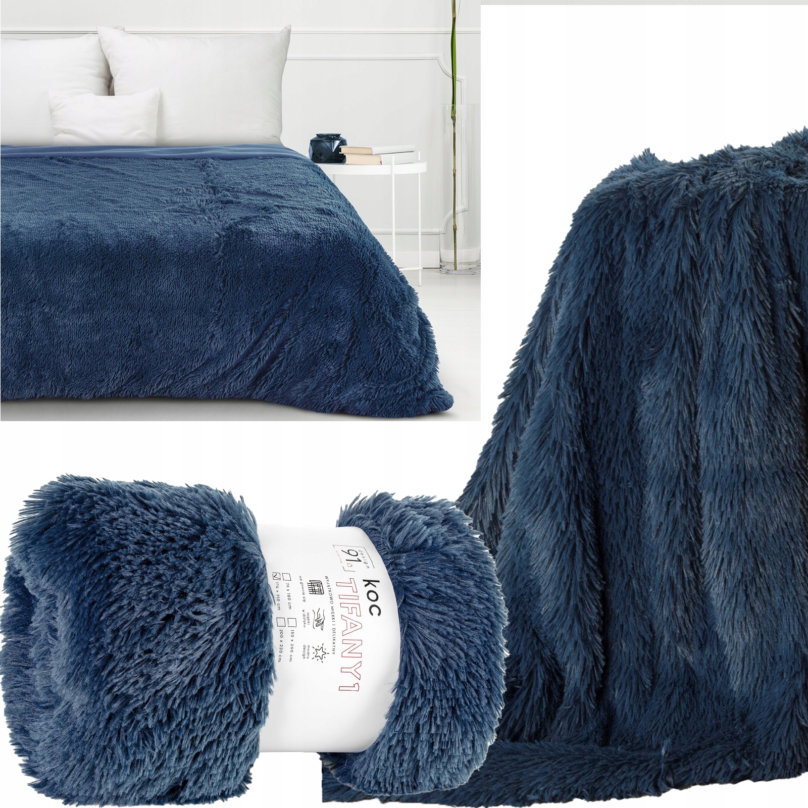 Koc włochacz futrzak pled narzuta na łóżko 200 cm x 220 granatowy