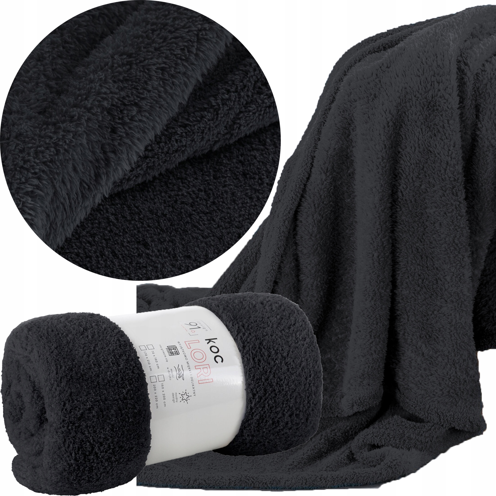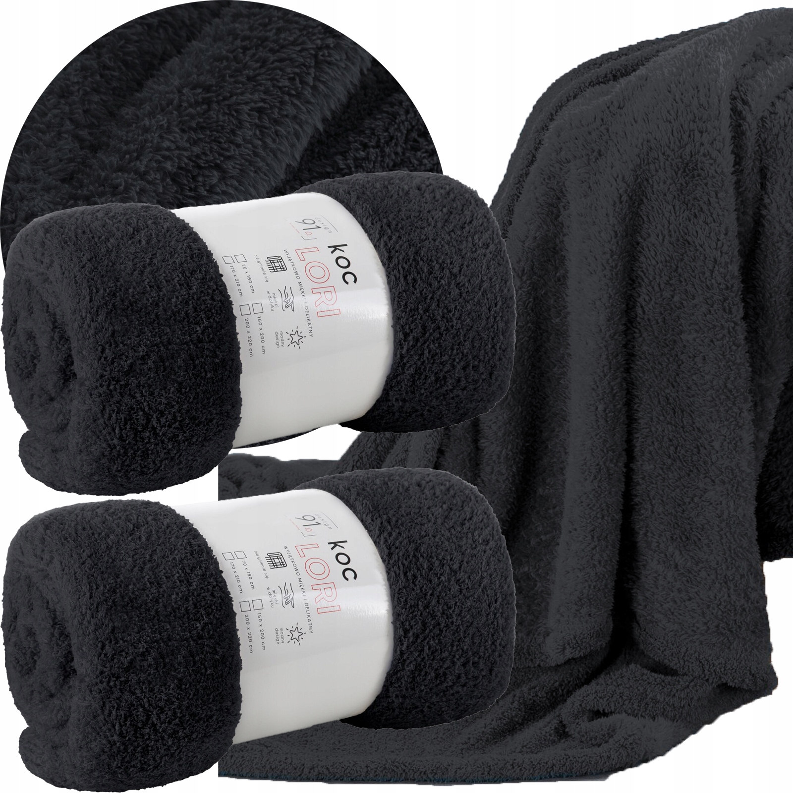 Komplet na kanapę i dwa fotele koc 170×210 + 2 x 70×160 czarny typ flano