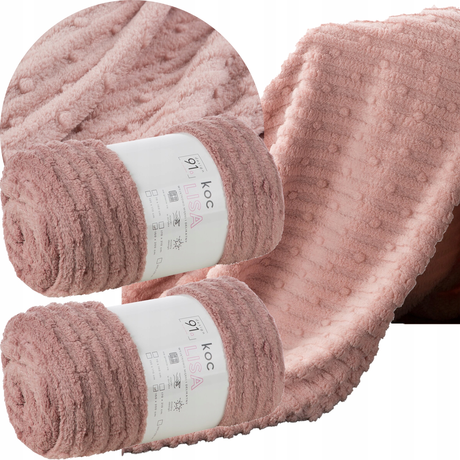 Komplet na kanapę i dwa fotele koc 170×210 + 2 x 70×160 puder