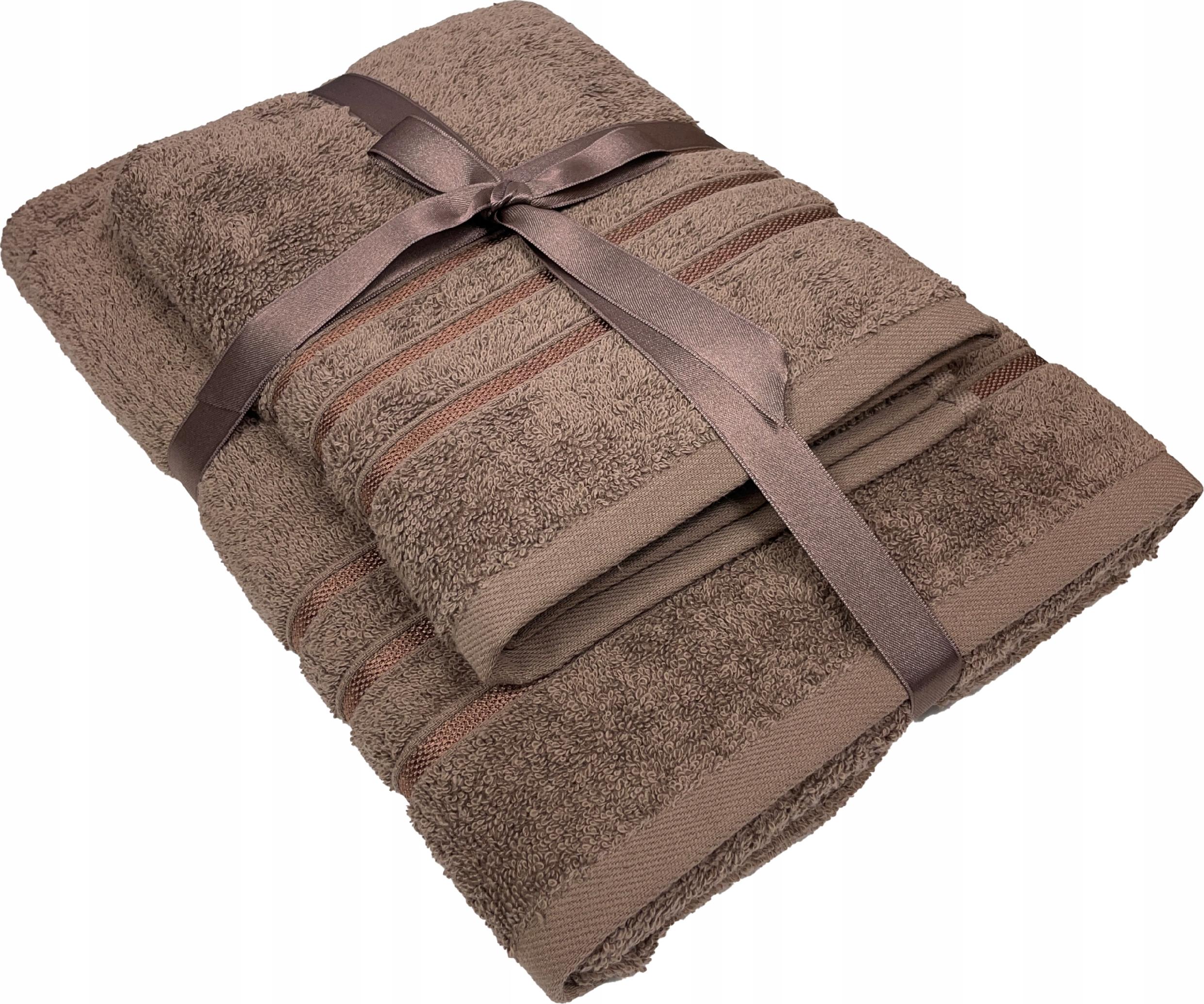Ręcznik kąpielowy bawełna miękki chłonny brąz zestaw 3 szt prezent