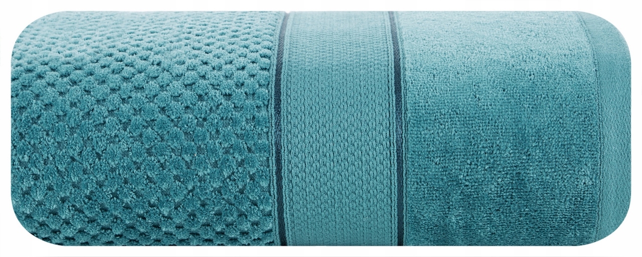 Ręcznik welurowy z prostą bordiurą i frotte ze strukturą. Wysoka gramatura frotte gwarantuje dużą chłonność. Ręcznik odporny na pranie