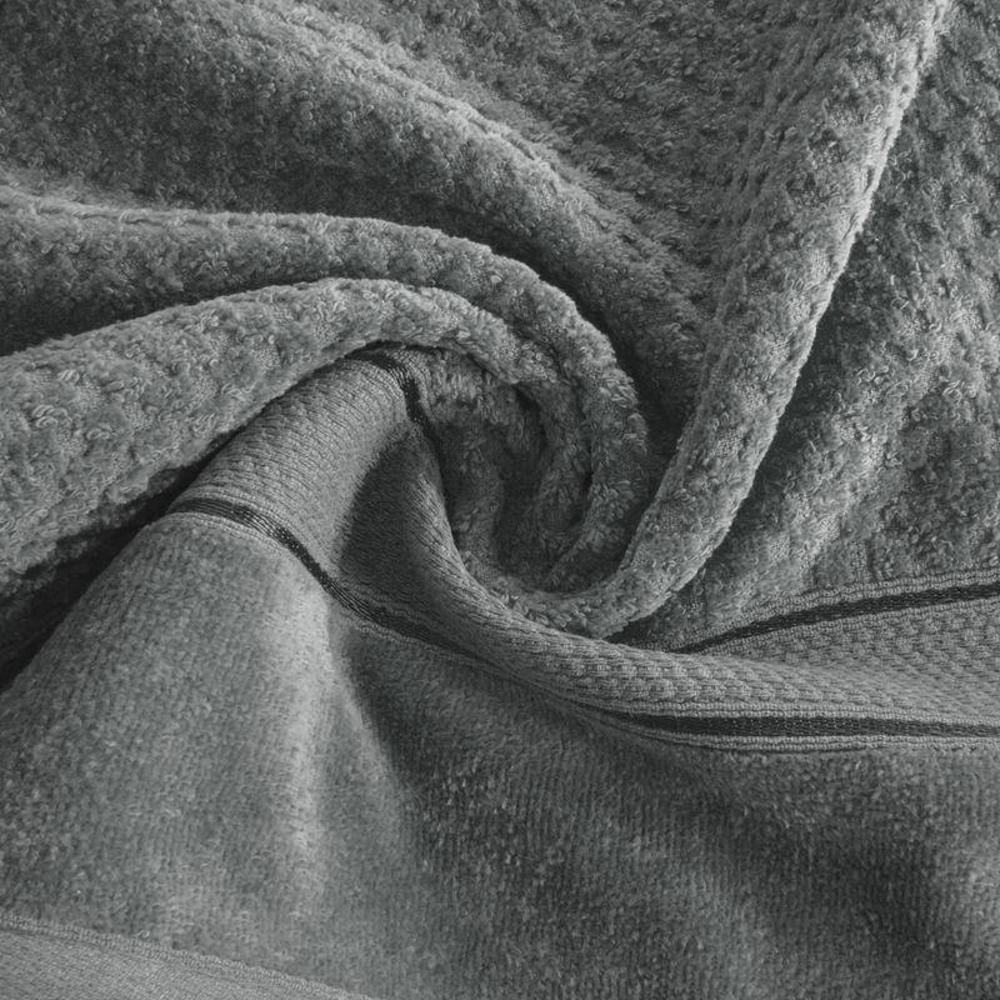 Ręcznik welurowy z prostą bordiurą i frotte ze strukturą. Wysoka gramatura frotte gwarantuje dużą chłonność. Ręcznik odporny na pranie