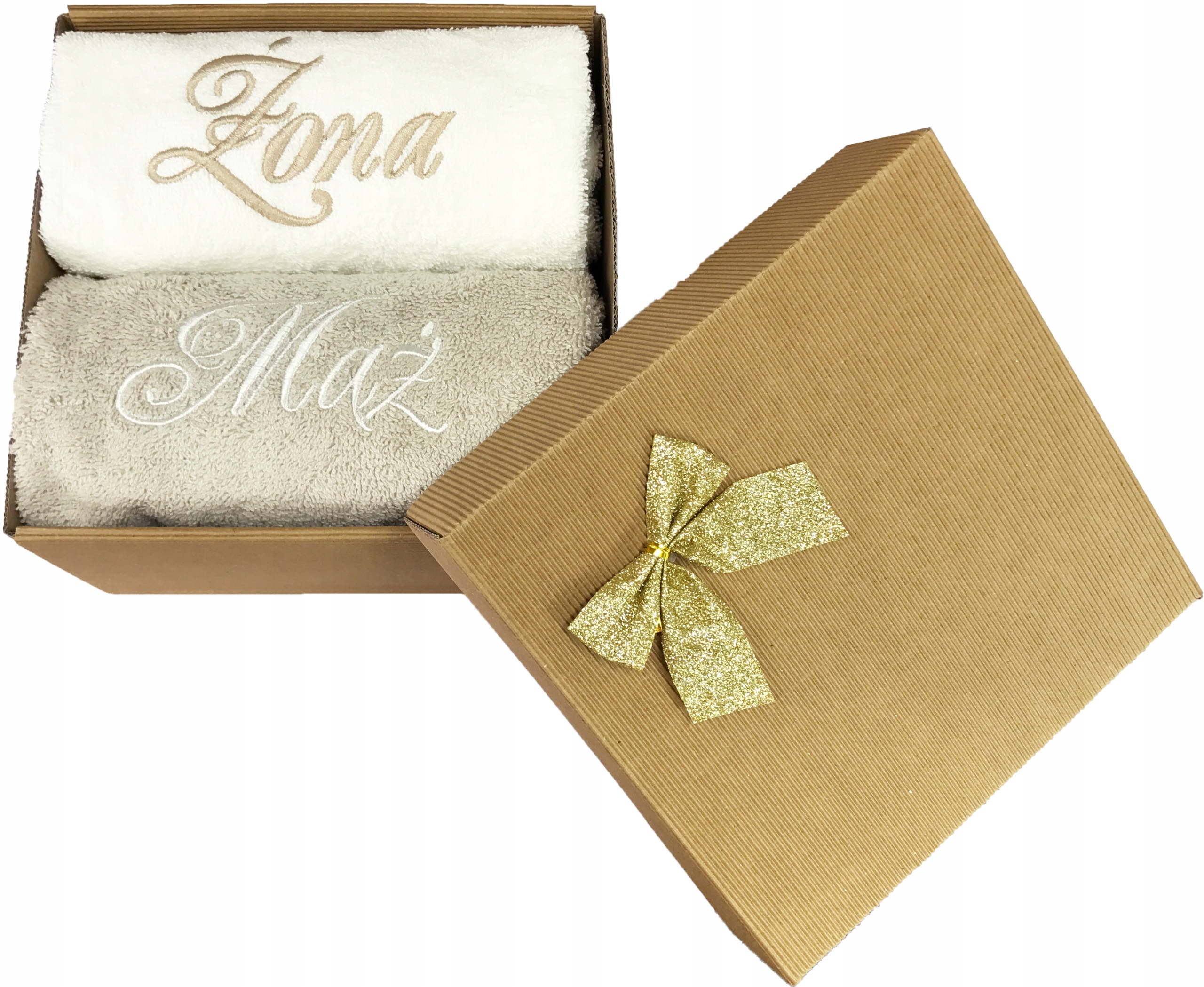 KOMPLET RĘCZNIKÓW PREZENT ŚLUB 2 SZT W PUDEŁKU