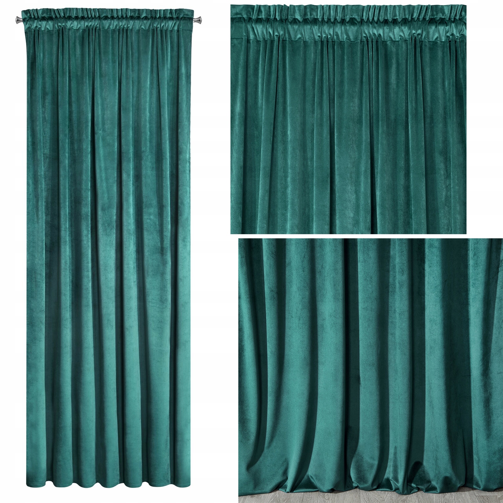 Mięciutka zasłona welwetowa taśma 140×270 ciemny turkus