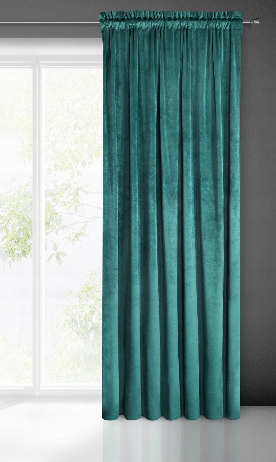 Zasłona z jednokolorowej welwetowej tkaniny o aksamitnej strukturze i subtelnym połysku to dekoracja okienna podkreślająca styl i elegancję wnętrza. Miękka tkanina o aksamitnej strukturze sprawia, że zasłona zjawiskowo odbija światło i znakomicie prezentuje się po zawieszeniu. Gładka tkanina w jednolitym kolorze to uniwersalna dekoracja pasująca zarówno do wnętrz klasycznych, jak i do nowoczesnych aranżacji. Ze względu na swoją gęstość tkanina dobrze kryje okno – w dzień przed promieniami słonecznymi, a wieczorami przed spojrzeniami z zewnątrz.
