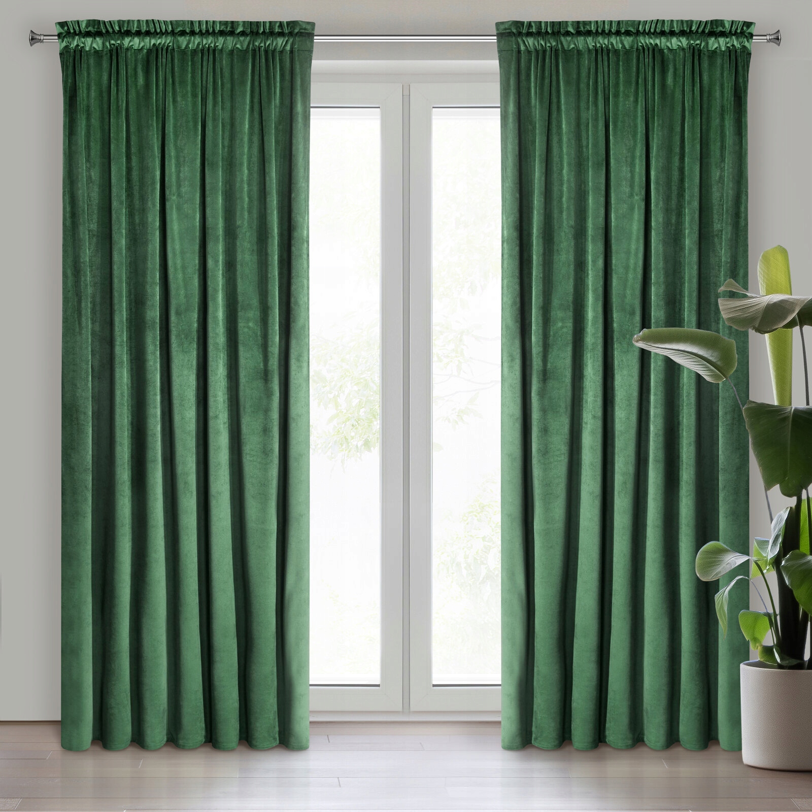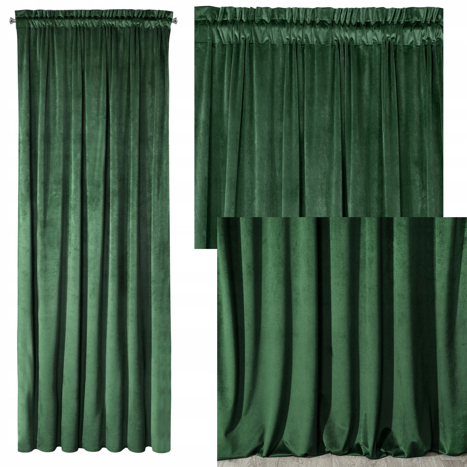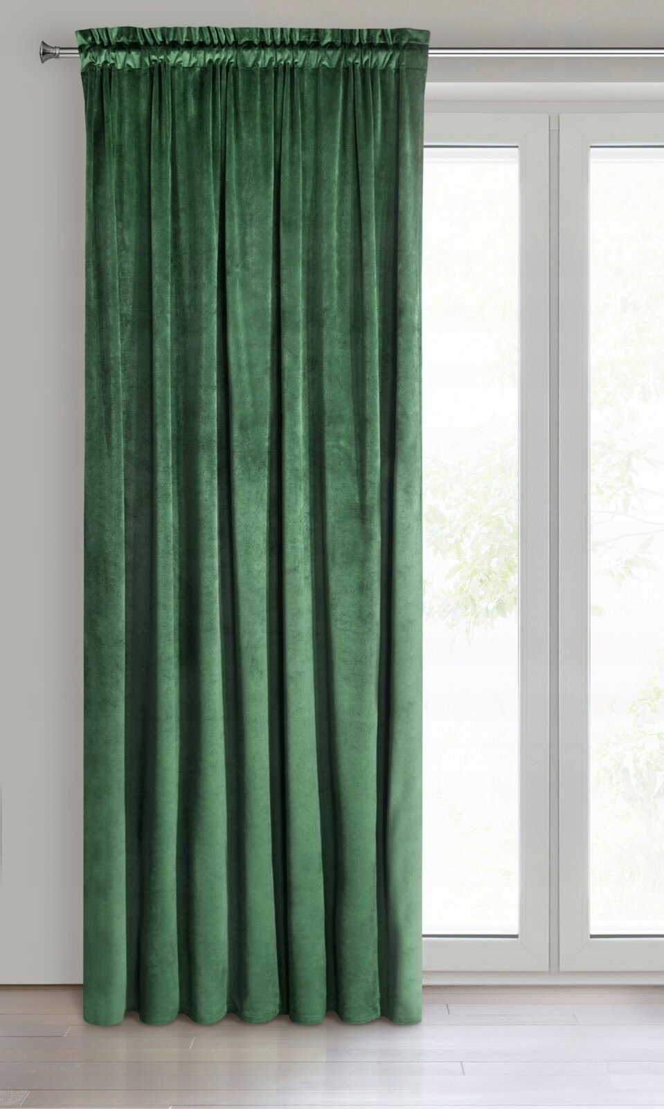 Mięciutka zasłona welwetowa taśma 140×270 ciemny zielony