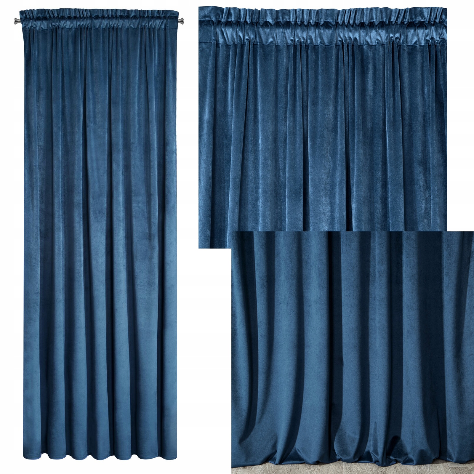 Mięciutka zasłona welwetowa taśma 140×270 granat