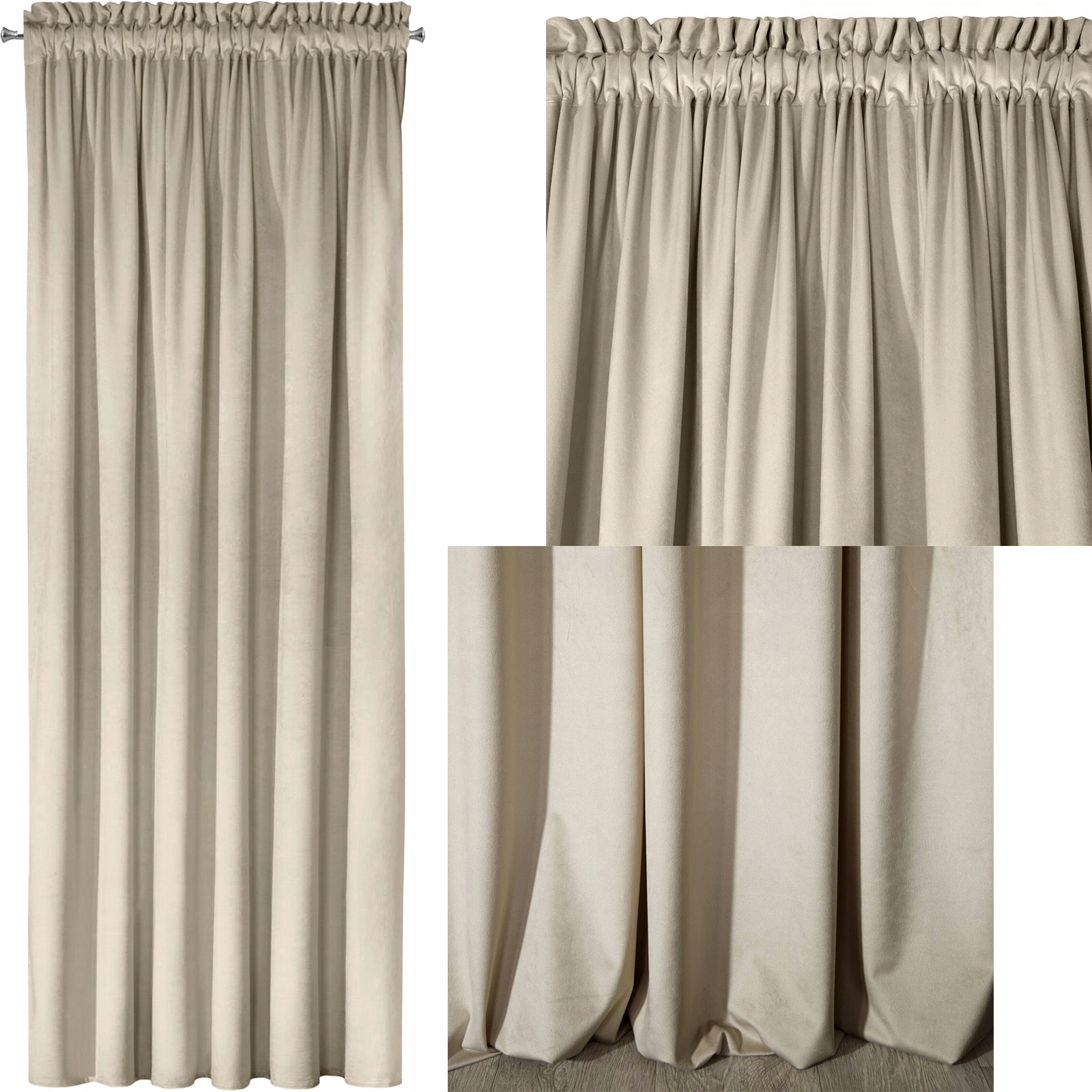 Mięciutka zasłona welwetowa taśma 140×270 j.beż