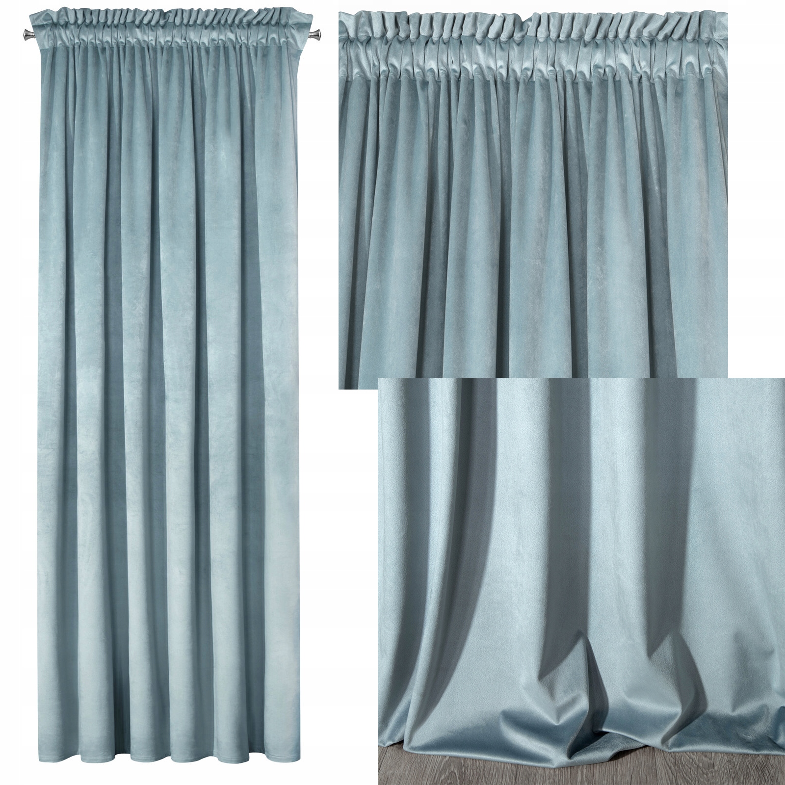 Mięciutka zasłona welwetowa taśma 140×270 morski