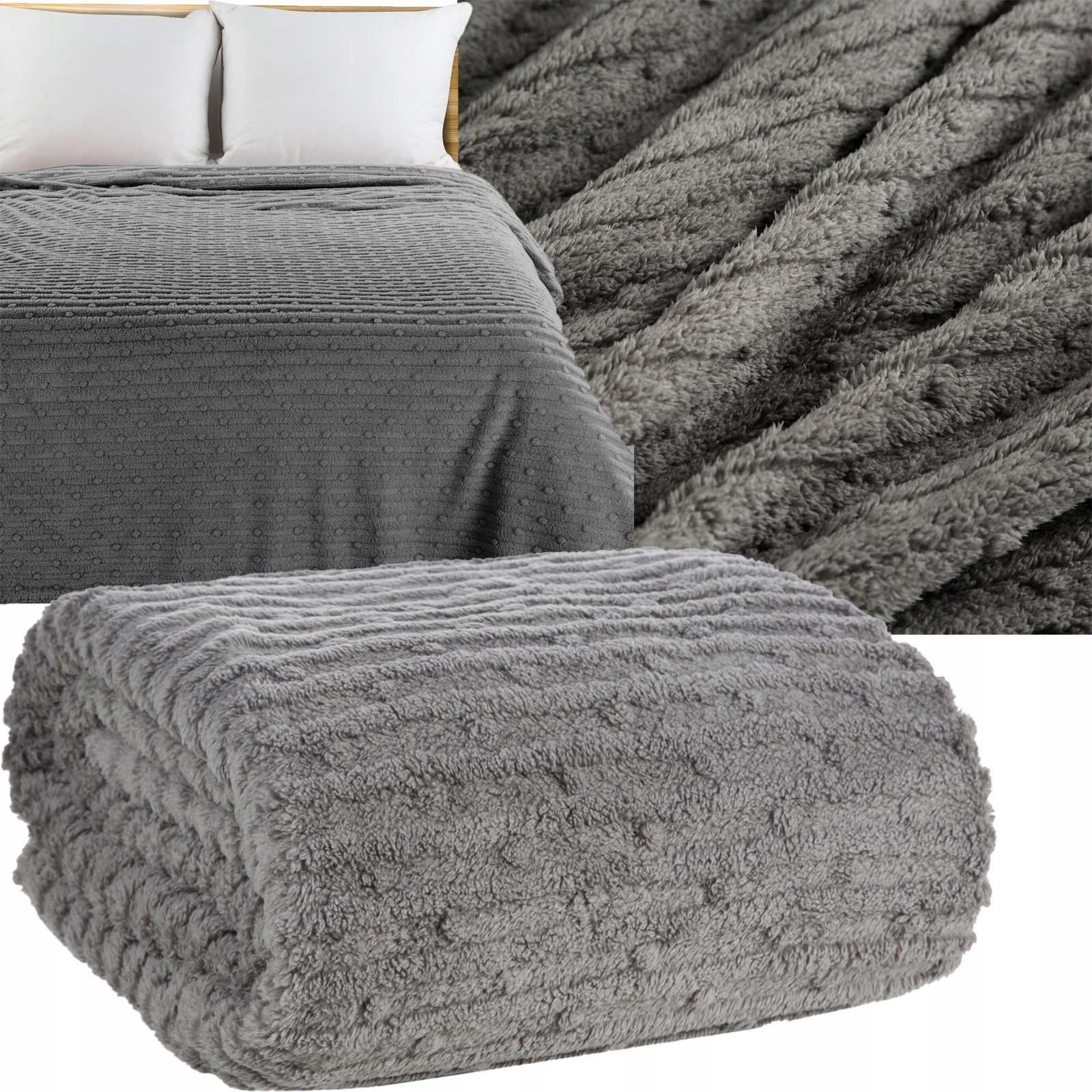 Mięciutki koc narzuta 150 cm x 200 cm STALOWY