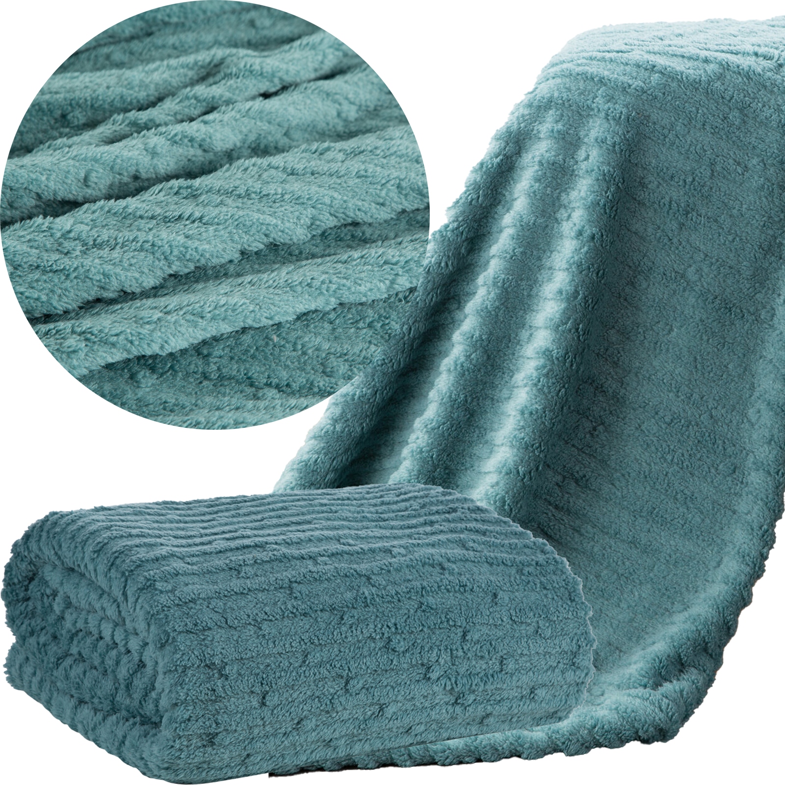 Miękki koc w wytłaczane pasy, którym pięknie udekorujesz swój salon lub sypialnię.