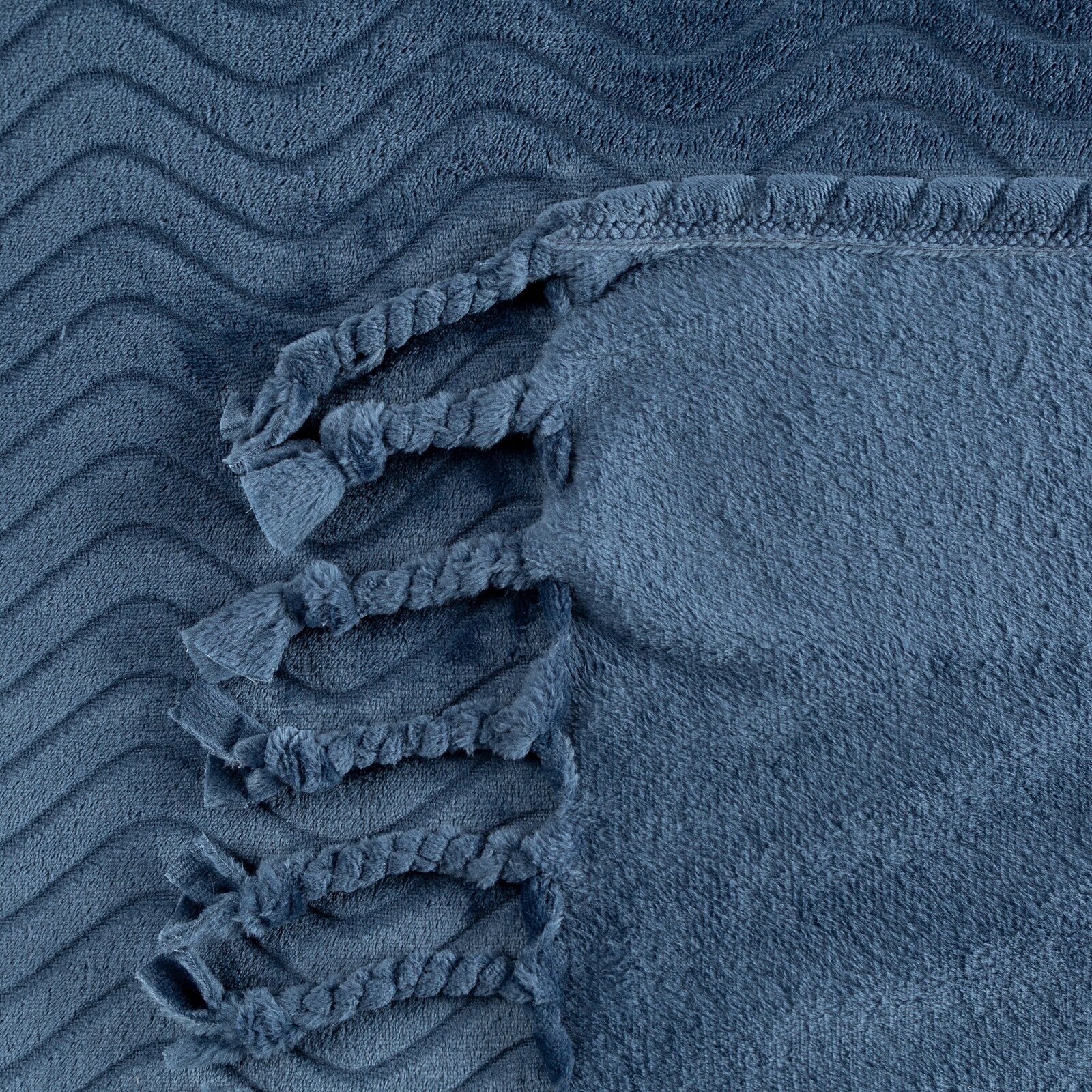 Koc flano z frędzlami szerokość: 150 cm, długość: 200 cm, kolor: GRANATOWY, Gramatura: 280 GSM, Skład: 100% poliester
