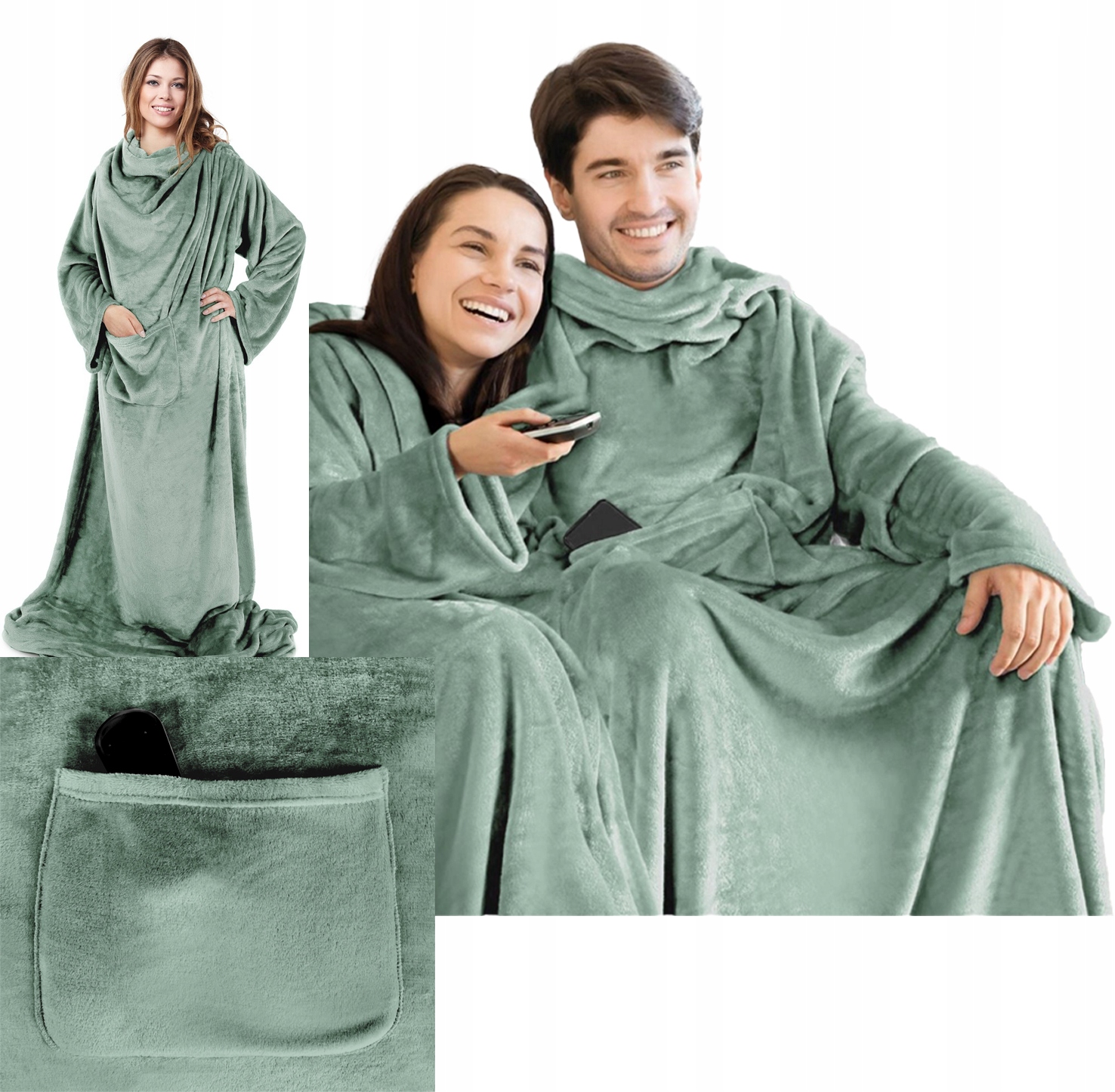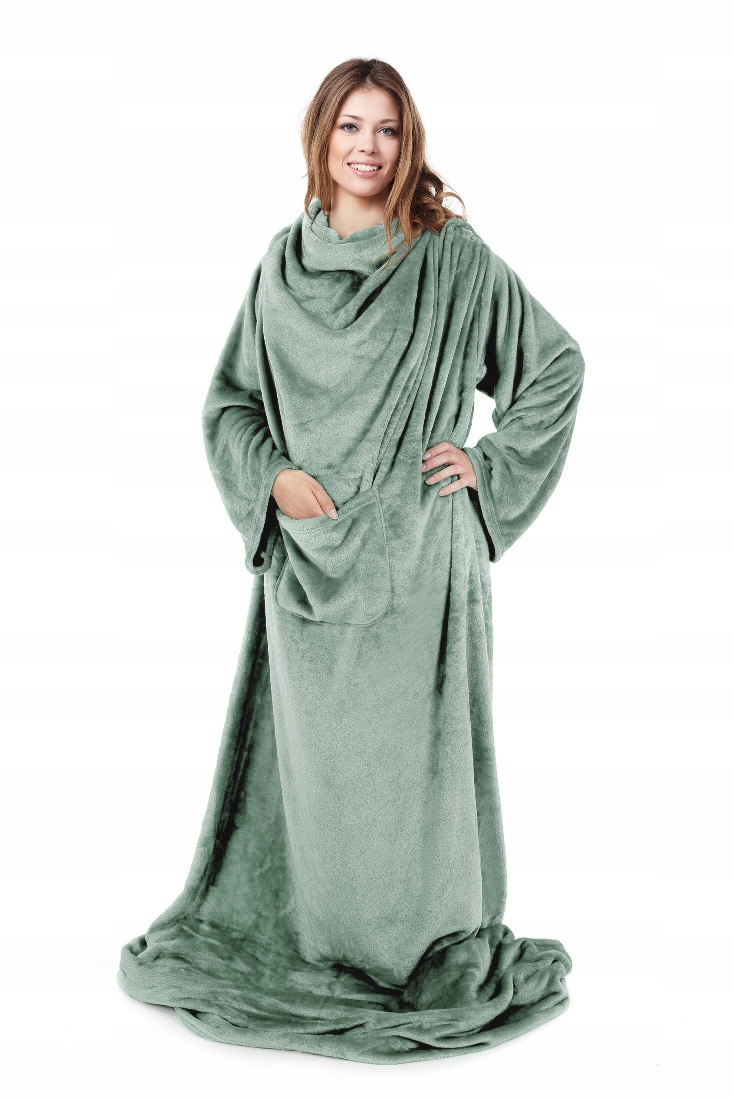 Mięciutki Koc Z Rękawami 150×180 miętowy Na Prezent