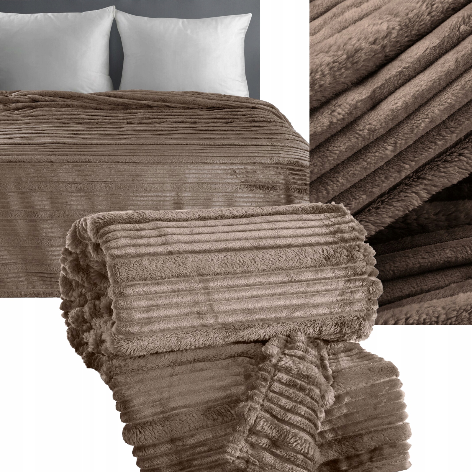 Koc narzuta 70 cm x 160 cm bardzo miękki w dotyku z efektem 3d stalowy