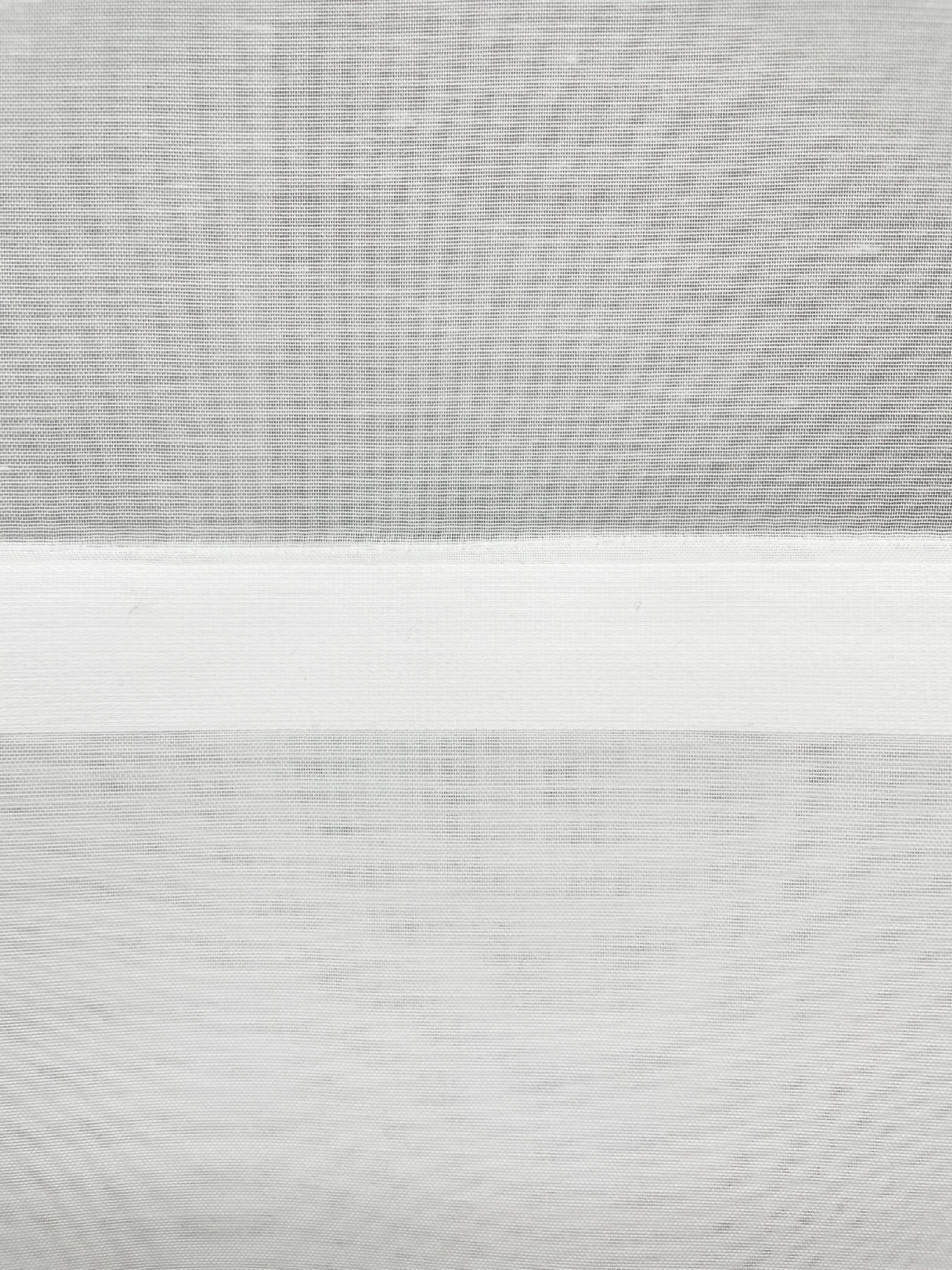 Roletka wykonana z tkaniny w kolorze śnieżnobiałym. U góry wszyta taśma 5 cm. Można wsuwać na tunel.
