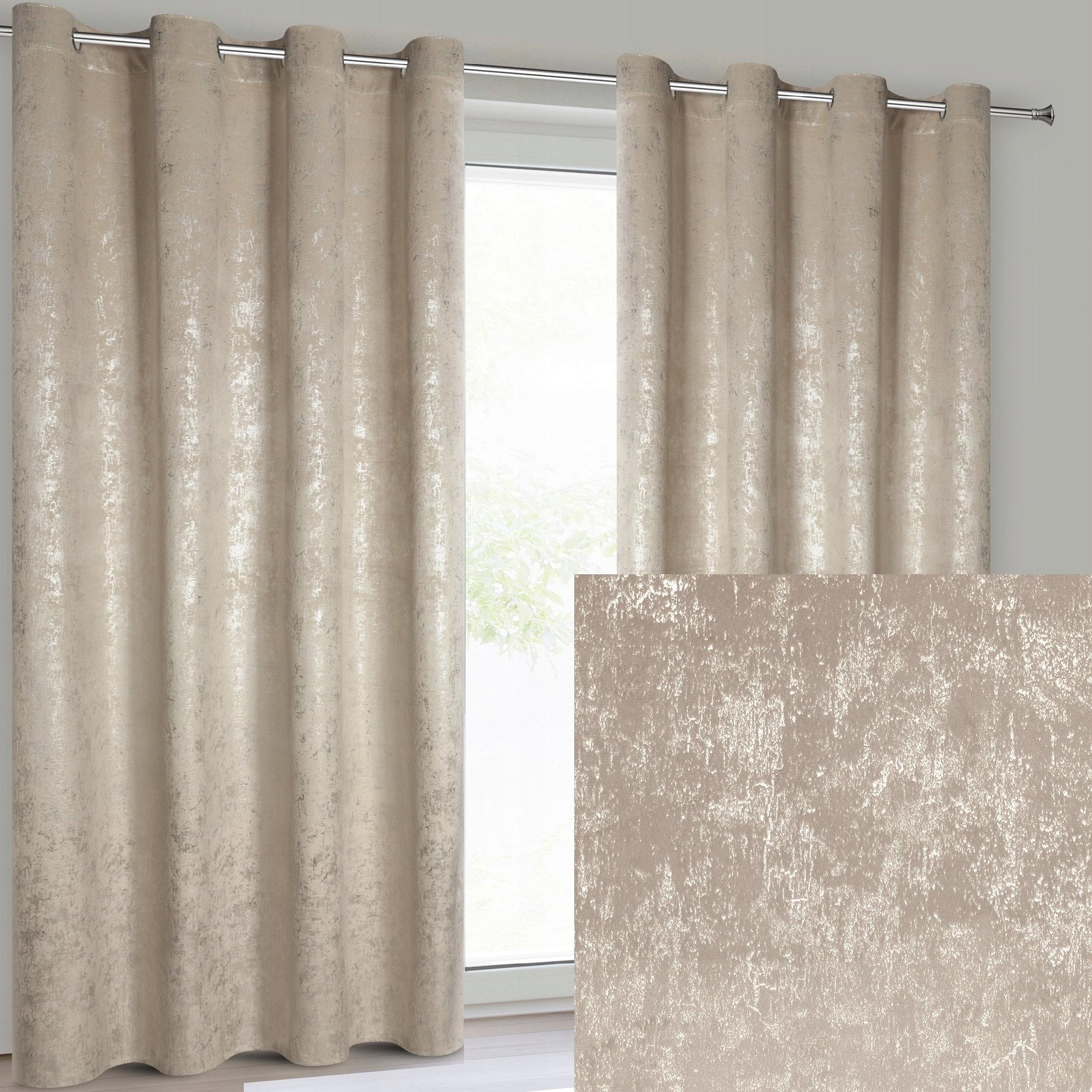 Nowoczesna Zasłona welwetowa 140X250 beżowa z delikatnym nadrukiem