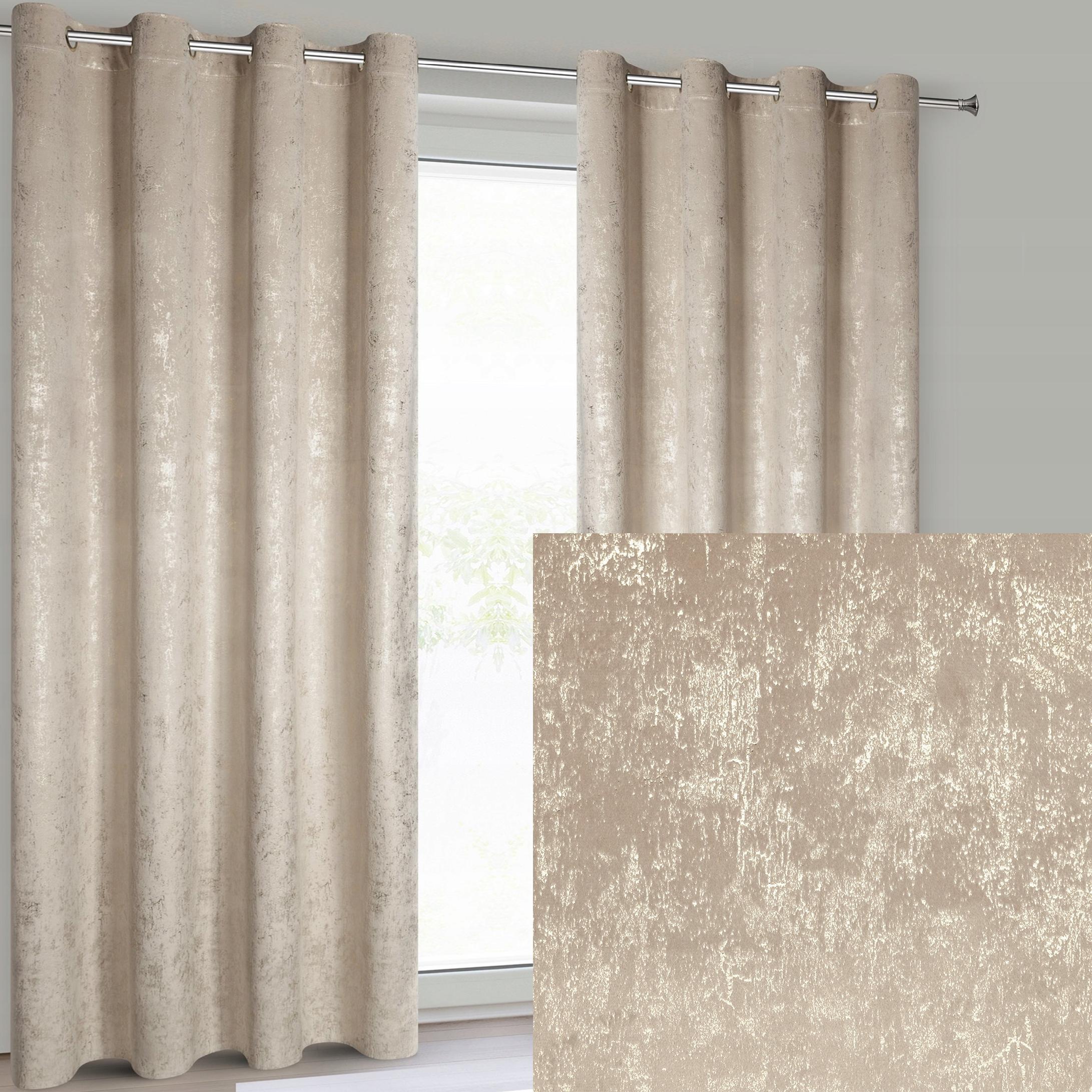 Nowoczesna Zasłona welwetowa 140X250 beżowa z delikatnym nadrukiem