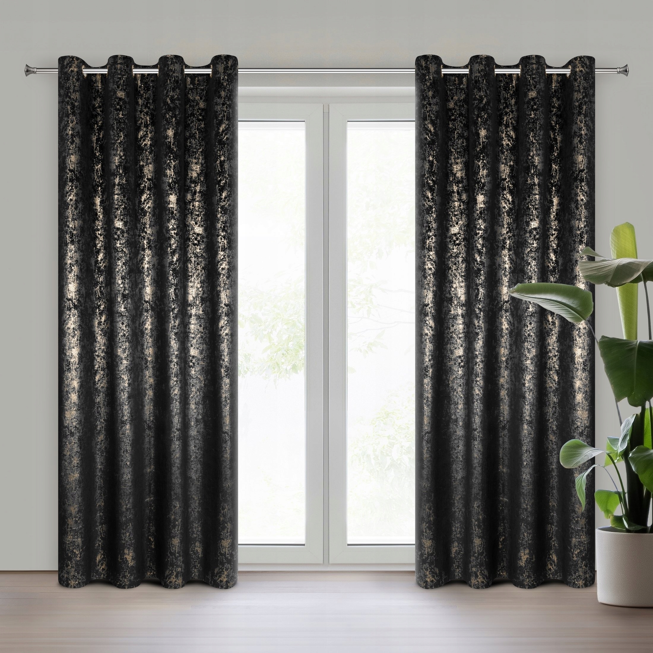 Nowoczesna Zasłona welwetowa 140X250 czarna z delikatnym nadrukiem