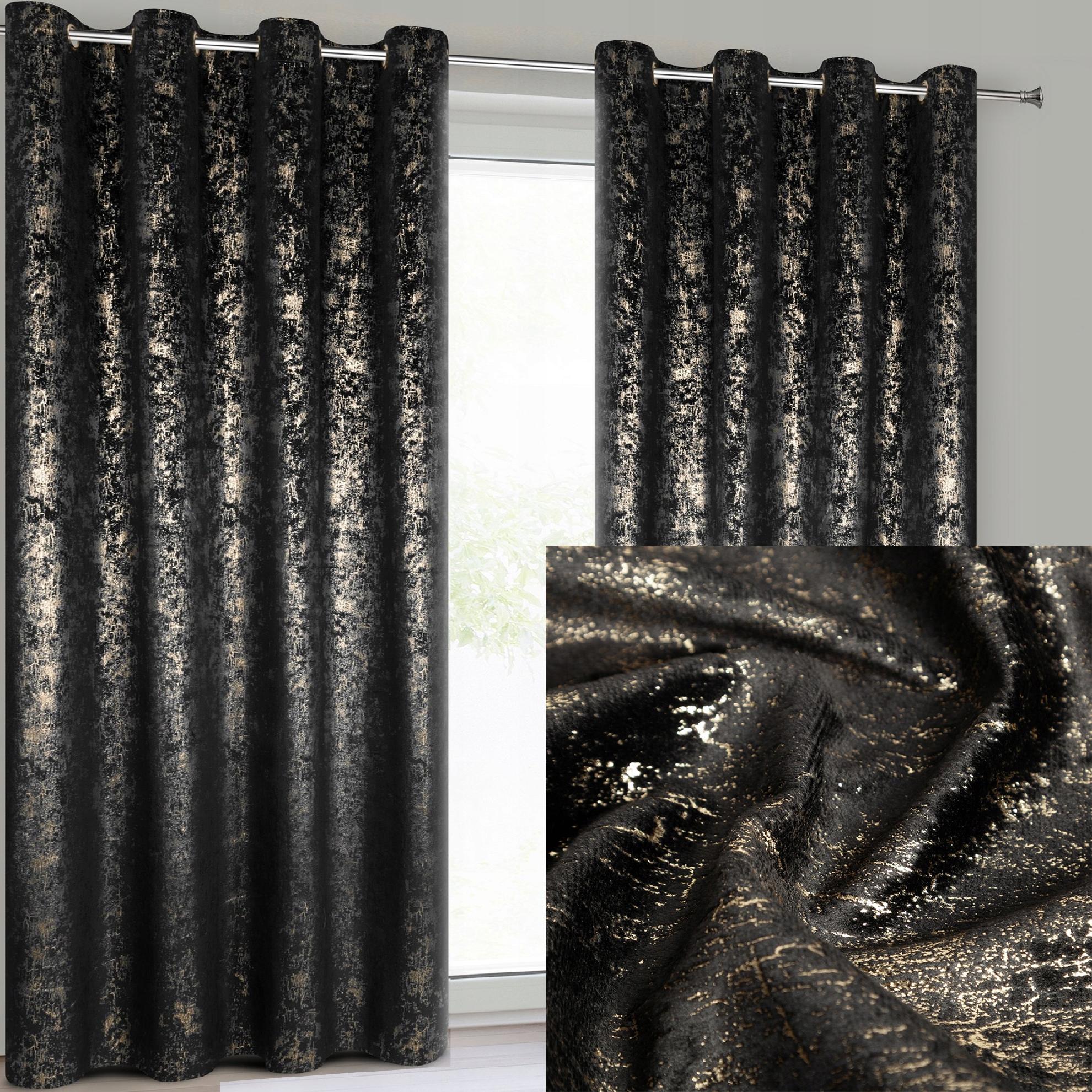Nowoczesna Zasłona welwetowa 140X250 czarna z delikatnym nadrukiem