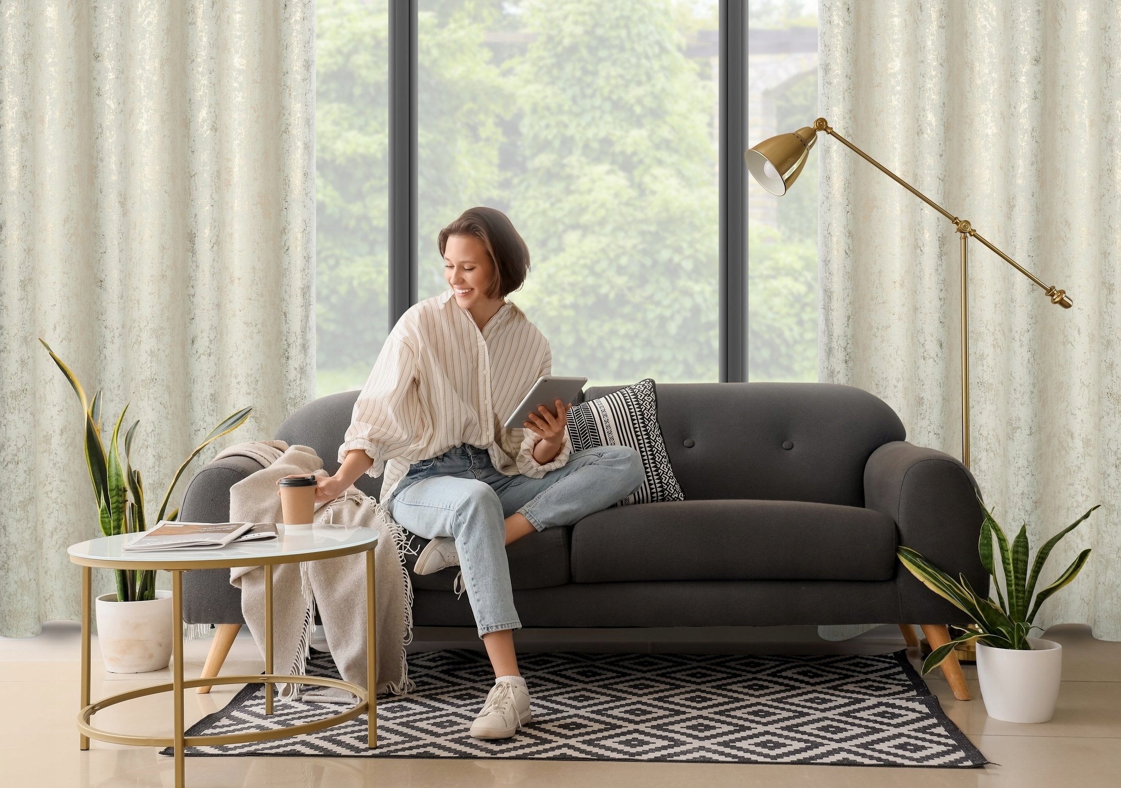 Zasłona z miękkiej welwetowej tkaniny, ozdobiona eleganckim motywem złota na spokojnym, stonowanym tle, to idealna dekoracja dla nowoczesnych wnętrz w stylu glamour. Aksamitna, przyjemna w dotyku tkanina dodaje wnętrzu luksusowego charakteru, a jej subtelny połysk pięknie komponuje się z naturalnym światłem. Modny wzór wprowadza do pomieszczenia stylowy akcent, tworząc przytulną i modną przestrzeń. Nasze kolekcje są tworzone z pasji do pięknych wnętrz – stwórz z nami idealną oazę spokoju w swoim domu.