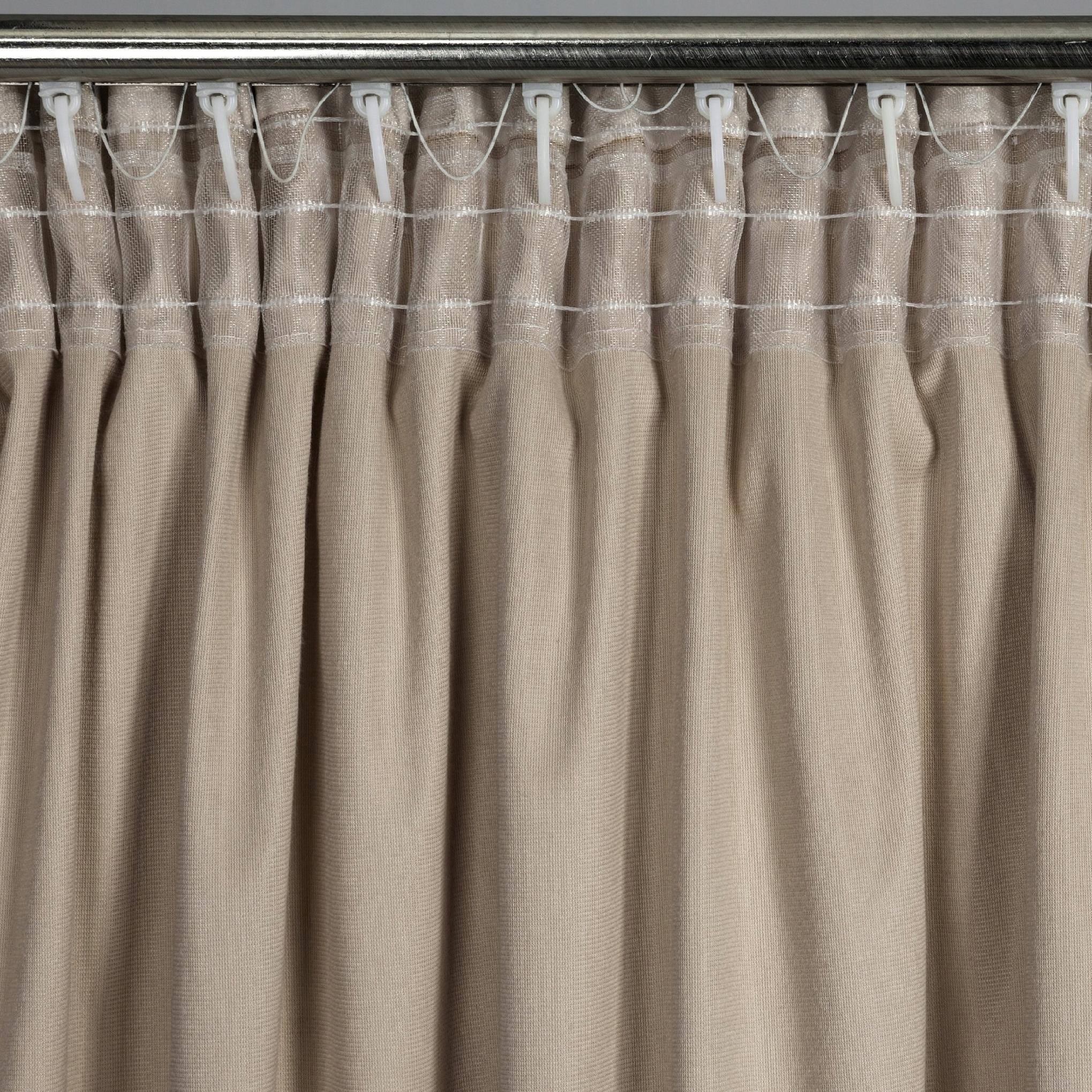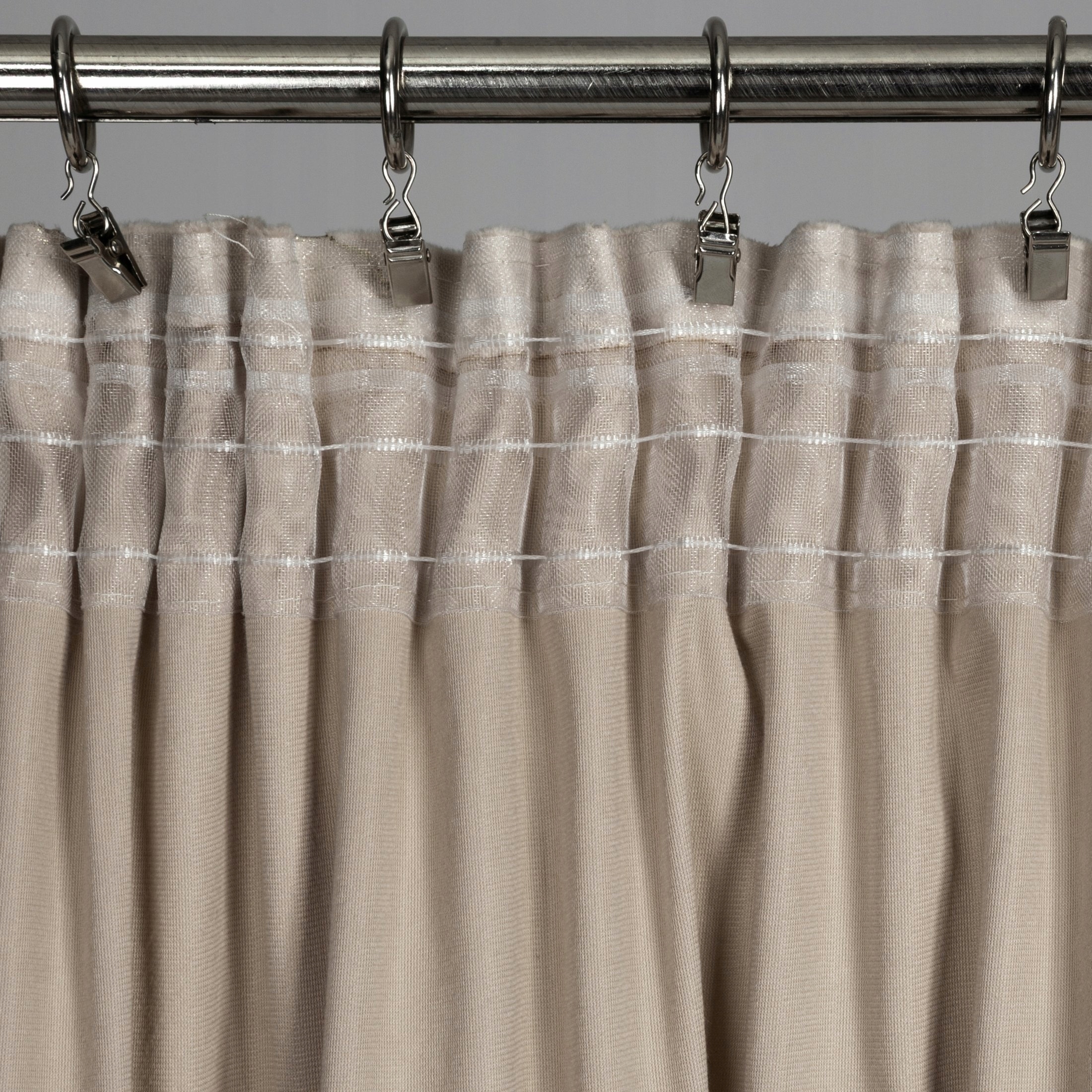Zastosowanie uniwersalnej taśmy marszczącej z opcją tunelu sprawia, że zasłonę możesz zawiesić zarówno za pomocą haczyków czy żabek, jak i, naciągając ją na karnisz drążkowy.