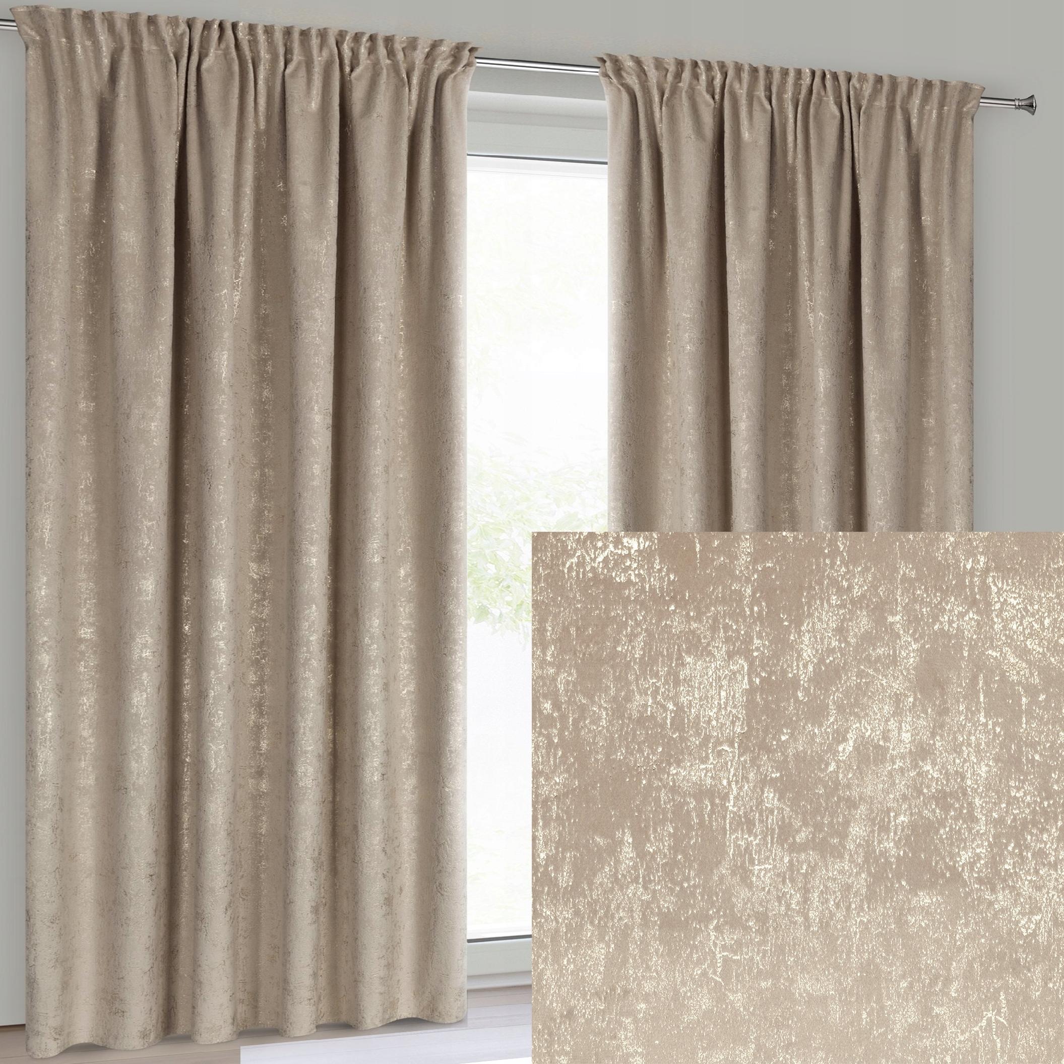Nowoczesna Zasłona welwetowa 140X270 beżowa z delikatnym nadrukiem