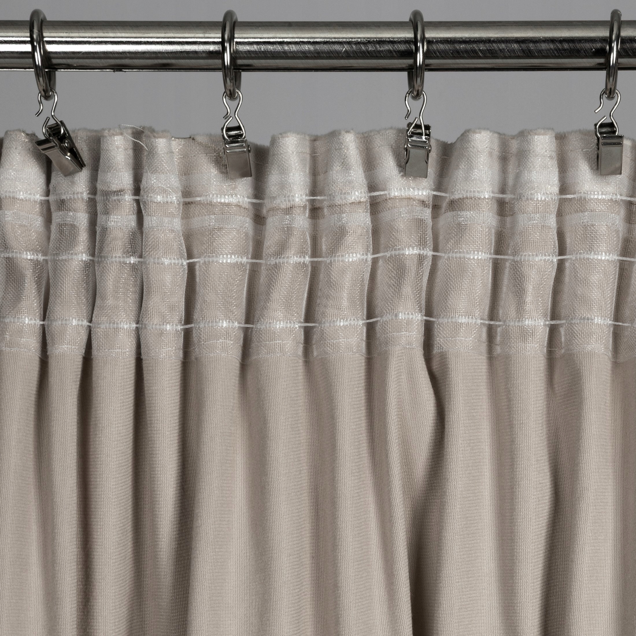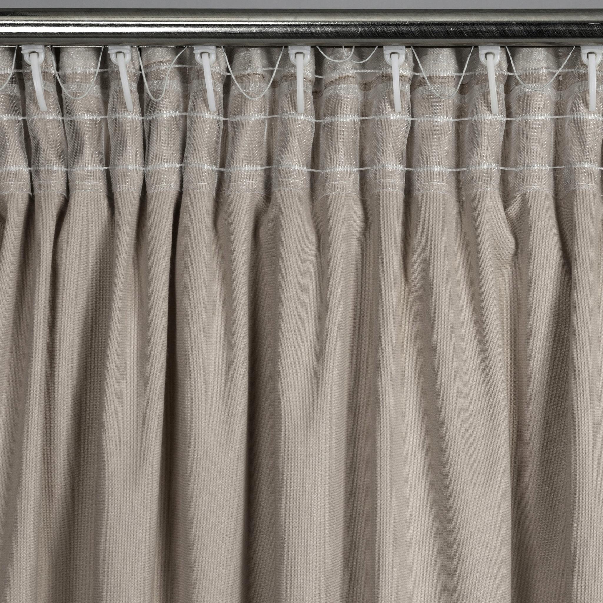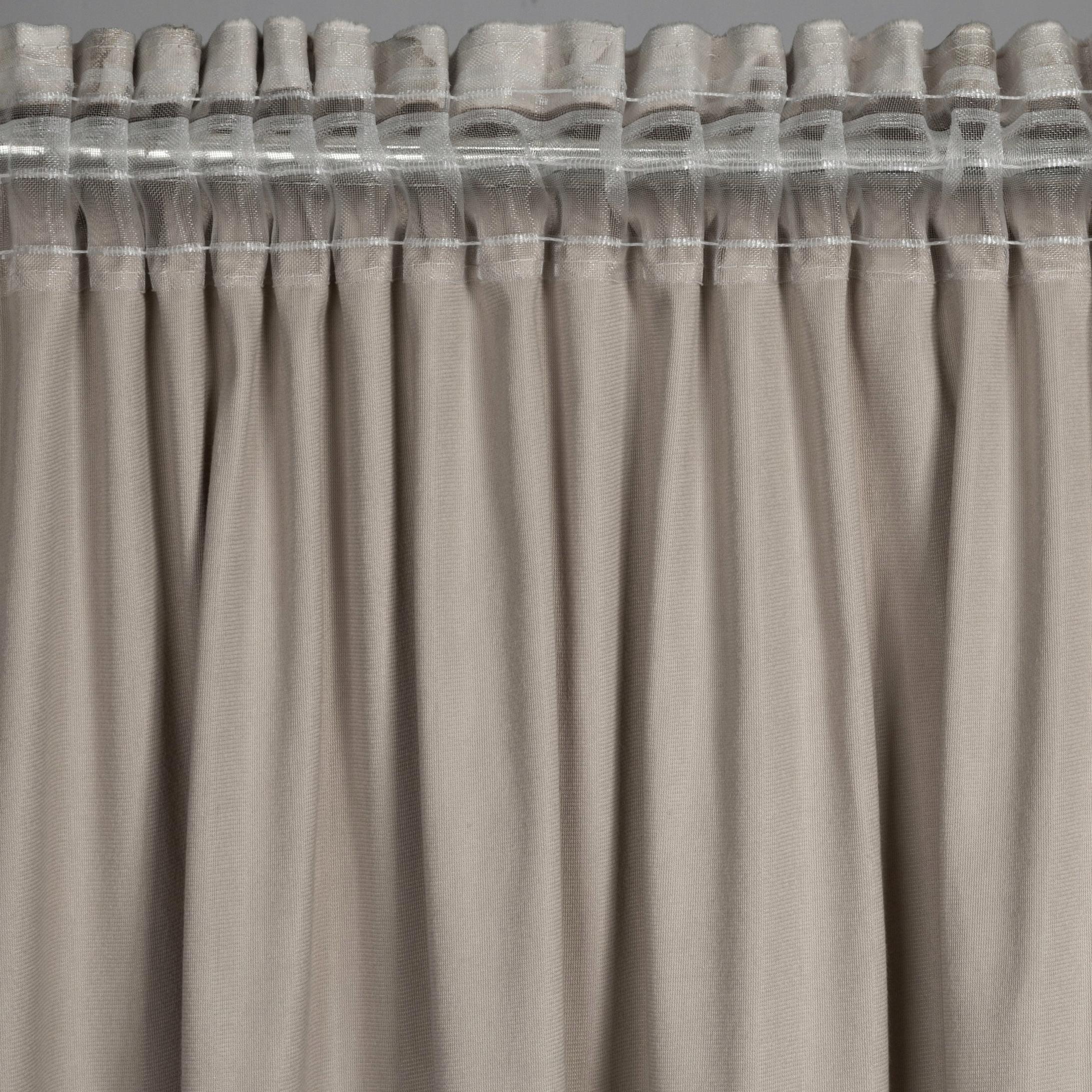Zastosowanie uniwersalnej taśmy marszczącej z opcją tunelu sprawia, że zasłonę możesz zawiesić zarówno za pomocą haczyków czy żabek, jak i, naciągając ją na karnisz drążkowy.