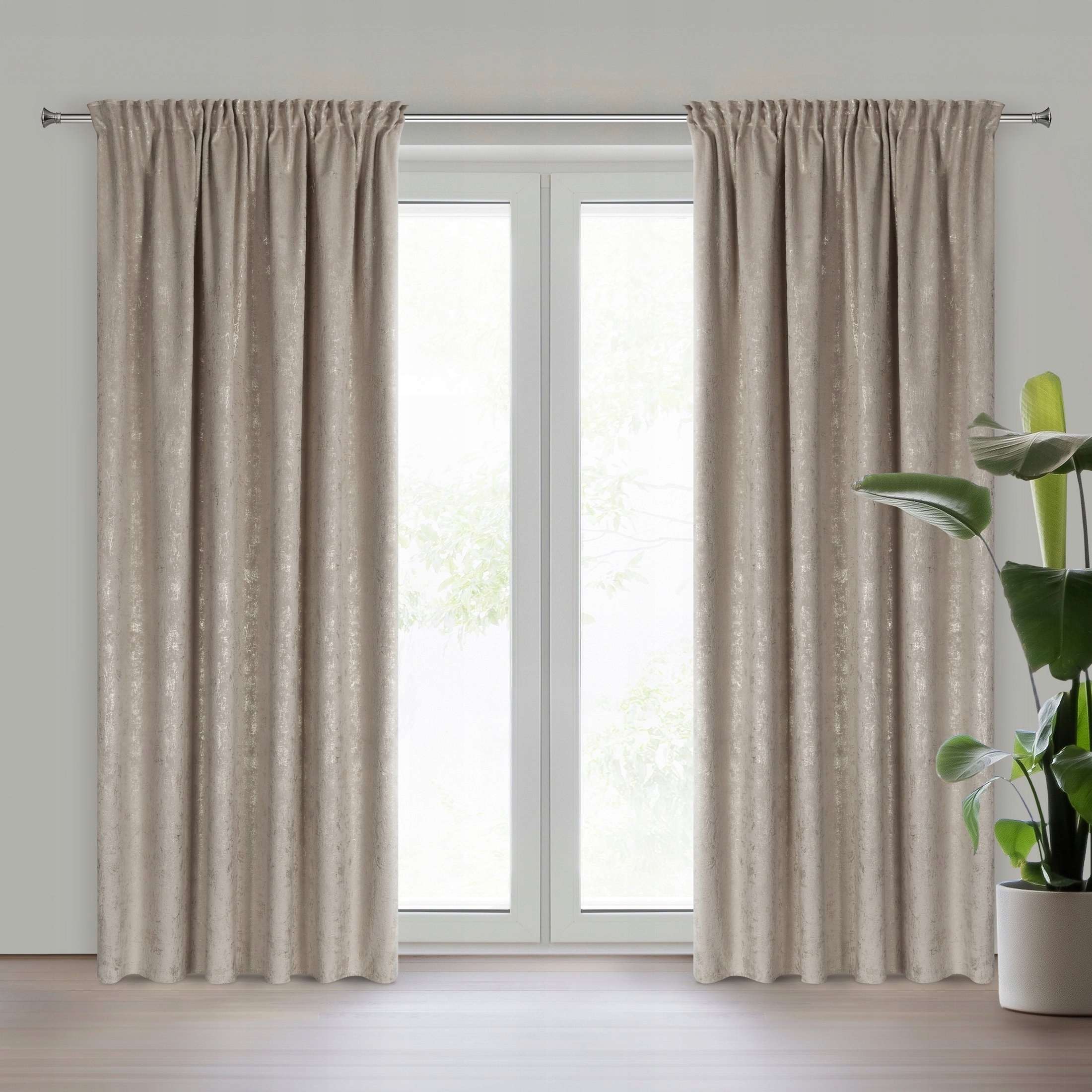 Nowoczesna Zasłona welwetowa 140X270 beżowa z delikatnym nadrukiem