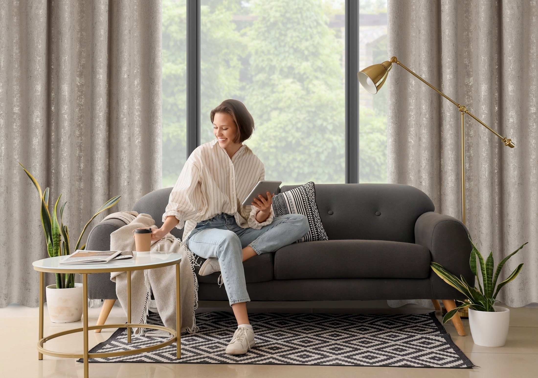 Zasłona z miękkiej welwetowej tkaniny, ozdobiona eleganckim motywem na spokojnym, stonowanym tle, to idealna dekoracja dla nowoczesnych wnętrz w stylu glamour. Aksamitna, przyjemna w dotyku tkanina dodaje wnętrzu luksusowego charakteru, a jej subtelny połysk pięknie komponuje się z naturalnym światłem. Modny wzór wprowadza do pomieszczenia stylowy akcent, tworząc przytulną i modną przestrzeń. Nasze kolekcje są tworzone z pasji do pięknych wnętrz – stwórz z nami idealną oazę spokoju w swoim domu.