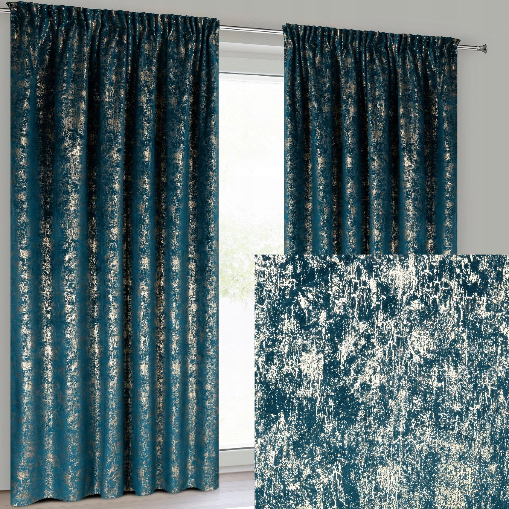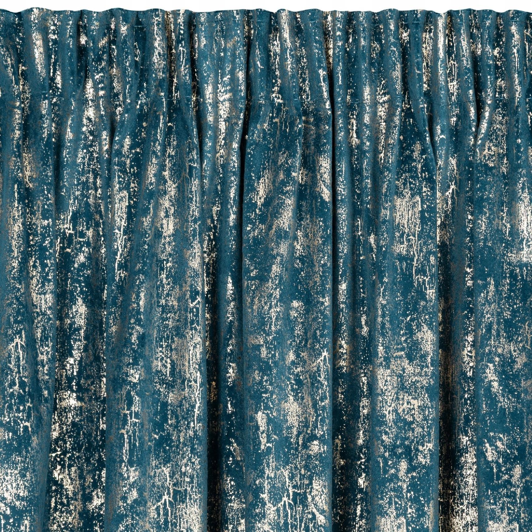 Nowoczesna Zasłona welwetowa 140X270 granatowa z delikatnym nadrukiem
