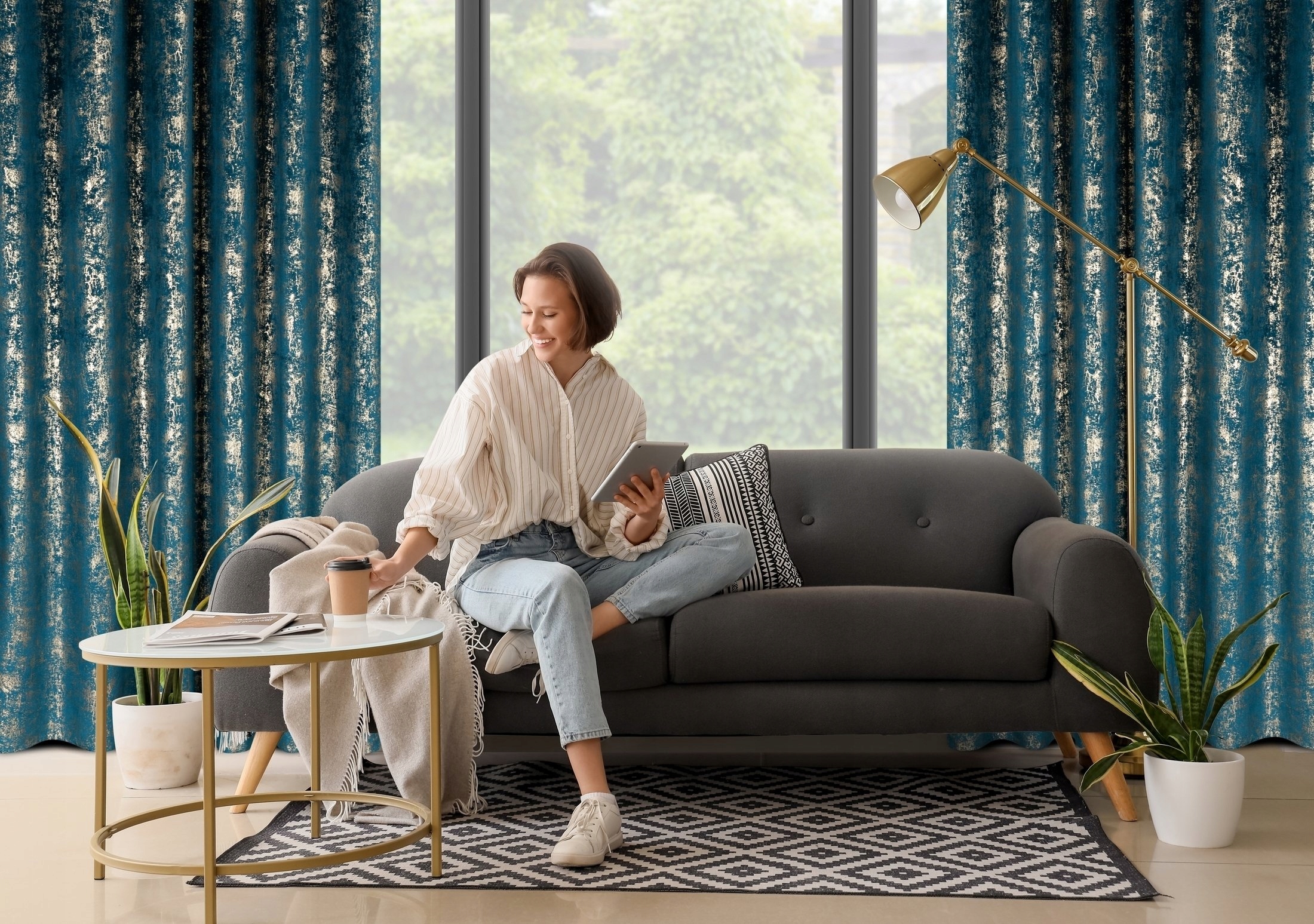 Zasłona z miękkiej welwetowej tkaniny, ozdobiona eleganckim motywem na spokojnym, stonowanym tle, to idealna dekoracja dla nowoczesnych wnętrz w stylu glamour. Aksamitna, przyjemna w dotyku tkanina dodaje wnętrzu luksusowego charakteru, a jej subtelny połysk pięknie komponuje się z naturalnym światłem. Modny wzór wprowadza do pomieszczenia stylowy akcent, tworząc przytulną i modną przestrzeń. Nasze kolekcje są tworzone z pasji do pięknych wnętrz – stwórz z nami idealną oazę spokoju w swoim domu.